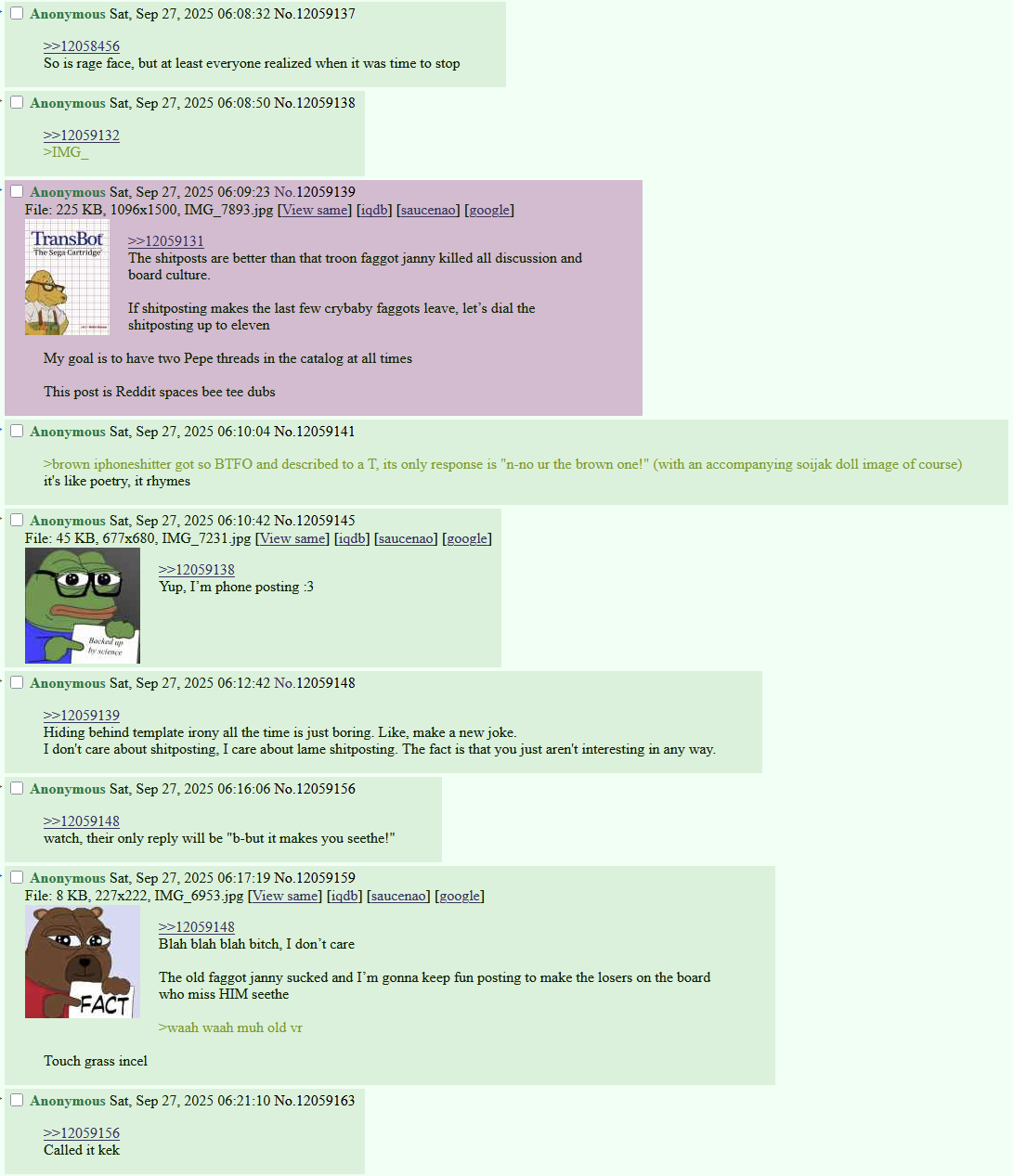 >>12440783It's literally some assblasted faggot who's stated his goal is to always have a pepe thread on the catalog at all times just to spite the jannies.