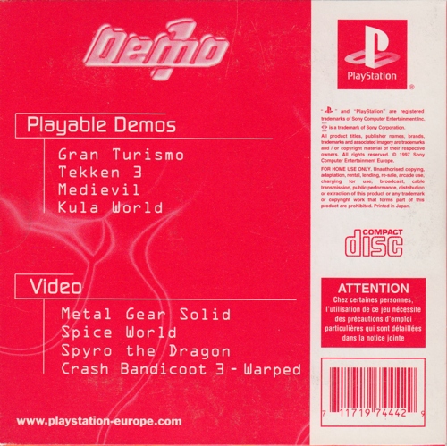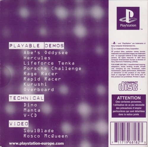 Also if you registered your psx you got a demo>PlayableA Bug's LifeAll Stars TennisBlood LinesCrash Bandicoot 2Cool Boarders 2Devil DiceMonkey HeroOddworld: Abe's ExoddusRidge Racer Type 4>TrailerA Bug's Life