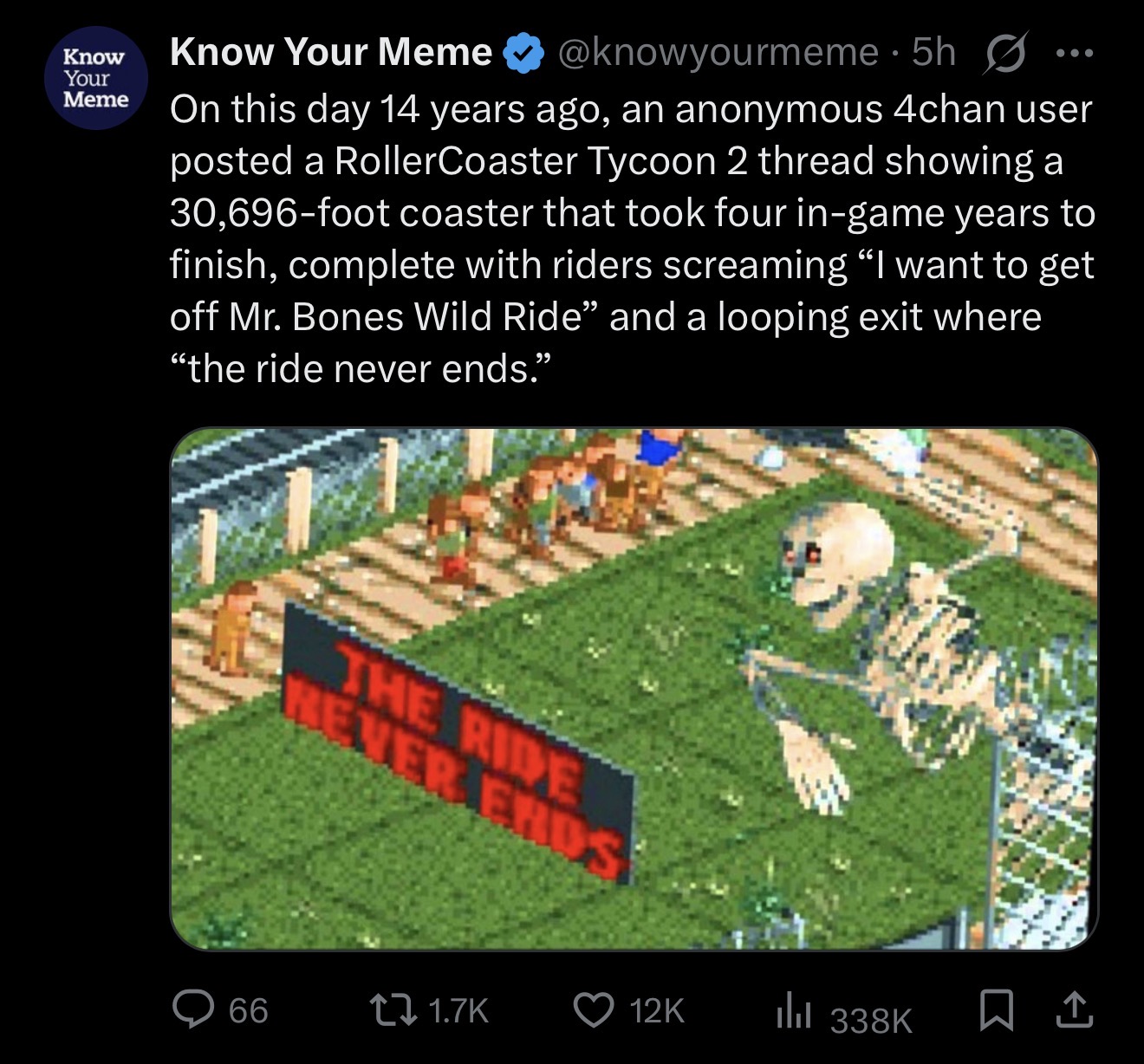 last thread:>>12442513last weekend map download:https://files.catbox.moe/axjcqu.parkAwesome Downloads:>OpenRCT2 - Currently the best way to play RollerCoaster Tycoon. We use the latest stable version for multiplayer unless otherwise noted:https://openrct2.org/downloads>UCES - includes all objdata files already extracted from each scenario upon loading, and includes tracks:http://www.mediafire.com/download/7wcrq3xl266d1bj/UCES.zip>Amazing Earl stuff - adds some custom-made rides and scenery:http://www.mediafire.com/download/f3jzct5v8kbzdfj/AmazingEarl.zip>Anon's devkit v0.2https://pastebin.com/y857FdJH>4chan Kit v0.3https://www.mediafire.com/file/dtzvwbcngrh0ghi/4chan_kit_v0.3.7z/file>/vr/ct RCT1 Collabhttps://files.catbox.moe/gldfii.zip- - - - - - ->Knowledge Basehttps://web.archive.org/web/20160807005625/http://www.rctstationarchive.com/knowledgebase/index.shtml>RCT1 Manualhttp://replacementdocs.com/download.php?view.1111>RCT Sites Archivehttps://archive.rctspace.com/>Headless Server Guide (PLEASE fix it)https://pastebin.com/smsQWZtB>Weekend Parks Archive (Needs updated)https://files.catbox.moe/2h17nx.rar>Current state of weekend multiplayer: Need more TOGOslop