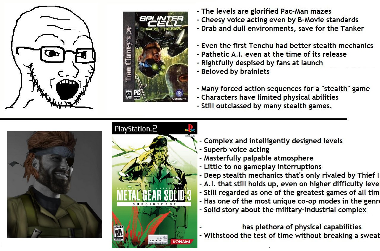 >>12473461bVASED hitmanCHAD. Both Spilnter cell and metal gear only became decent in the late 7th gen.