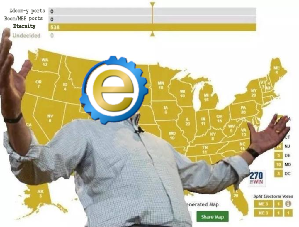 Played this Heartland thing for Eternity engine and I'm disappointed. It plays and looks like any other doom wad but has areas stacked one on top of another and there's a few trains. I was expecting more TECHNOLOGY. The last few maps are slaughter too, dropped it by the final fight I think? Big arena with the heart and multiple waves coming in