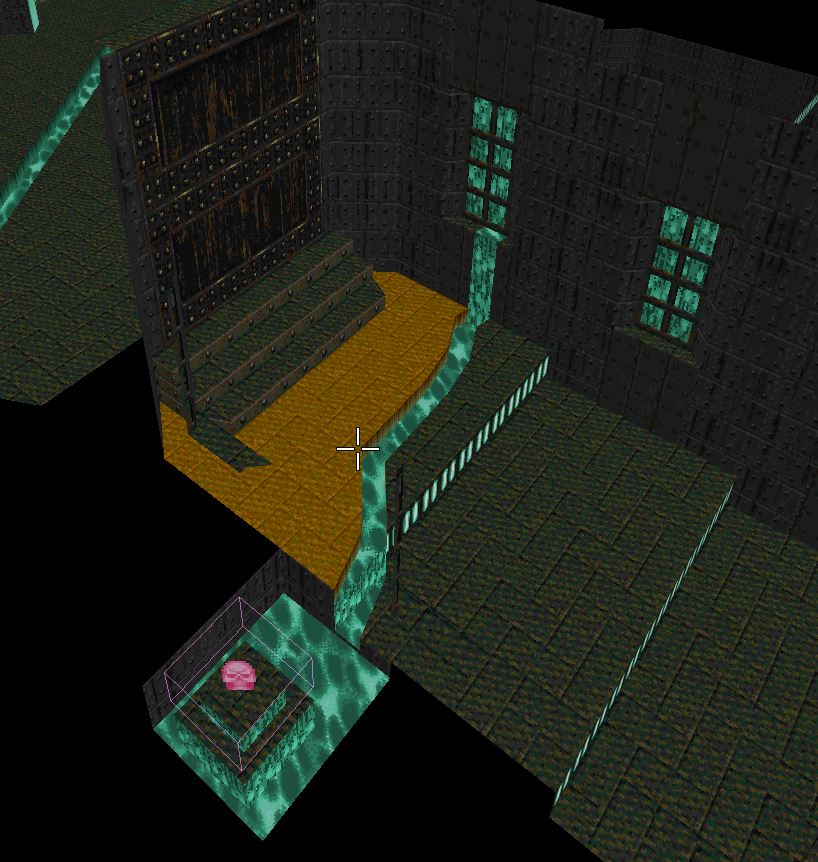 first room is done, i thinki'll make the rest of the level a little corridor around a courtyard with the key and then one final room before the exit
