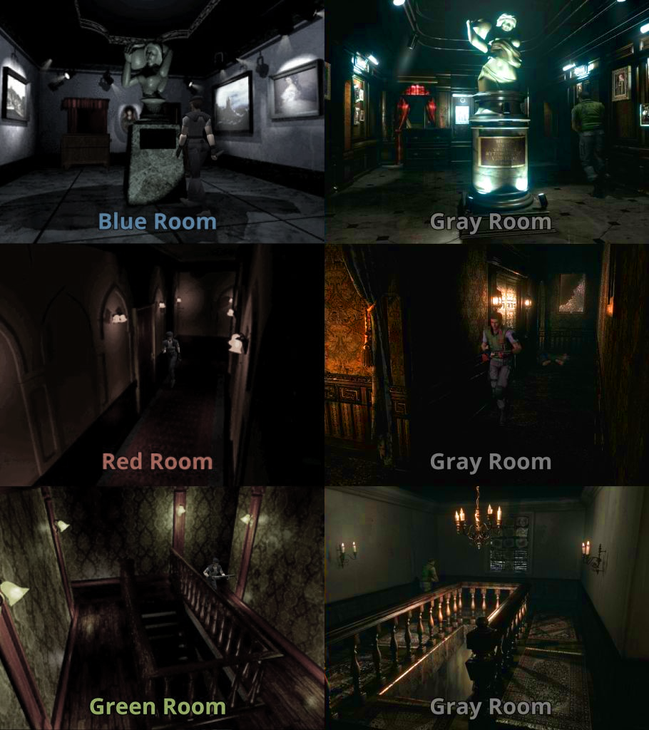>>12486051It's a considerable distinction, yes. The re-releases of REmake fuck with the color grading (and do a bunch of other shit, actually), so it really doesn't have the same look as it was intended to have when it was made.The original Resident Evil is definitely more colorful either way, but I don't think it's honest or fair to compare original Resident Evil to ONLY the later re-releases of REmake, especially when the subject is on colors.Rather, there should be two columns for REmake, one for the original release, and one for the re-releases. Maybe also Deadly Silence, I never played that one, but it did a lot of things with the graphics I think.Also, just for fun, I took OP's image here and decreased saturation by 70% on the original side, and increased it by 70% on the REmake side. This isn't accurate either, but original Resident Evil still looks quite good with desaturated colors, and if you boost the colors on the re-release of REmake, it does indeed look much better (but again, the re-release version has more desaturated colors to begin with).I think what can be agreed upon is that the re-release makes REmake look worse than it originally did, and that it would look better if the colors were stronger.It makes me wanna see some color hacks for these games.>REDC : Gloom Edition>REDC : Suspiria Edition>REmake : Anti-Mastered>>12485812I remember when it was first re-released, I noticed that some rooms looked oddly rough.That one room near where you mix the V-Jolt, one of the shots looks not like they did an all new render (as they seem to have done for some rooms), but like they outright took the render from the original shipped game and ran it through a neural upscaling algorithm from the time. It looks weirdly blurry and artifacted.