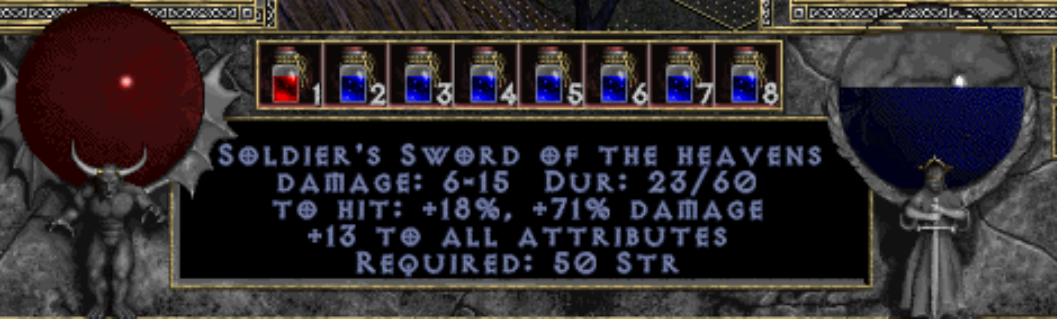 It's not a Kings Sword of Haste, but it'll do.Honestly, entering level 16 with this wasn't even fair. Oneshotting Hell Knights and Balrogs left and right. AC so high that I can't even get forced into a block.