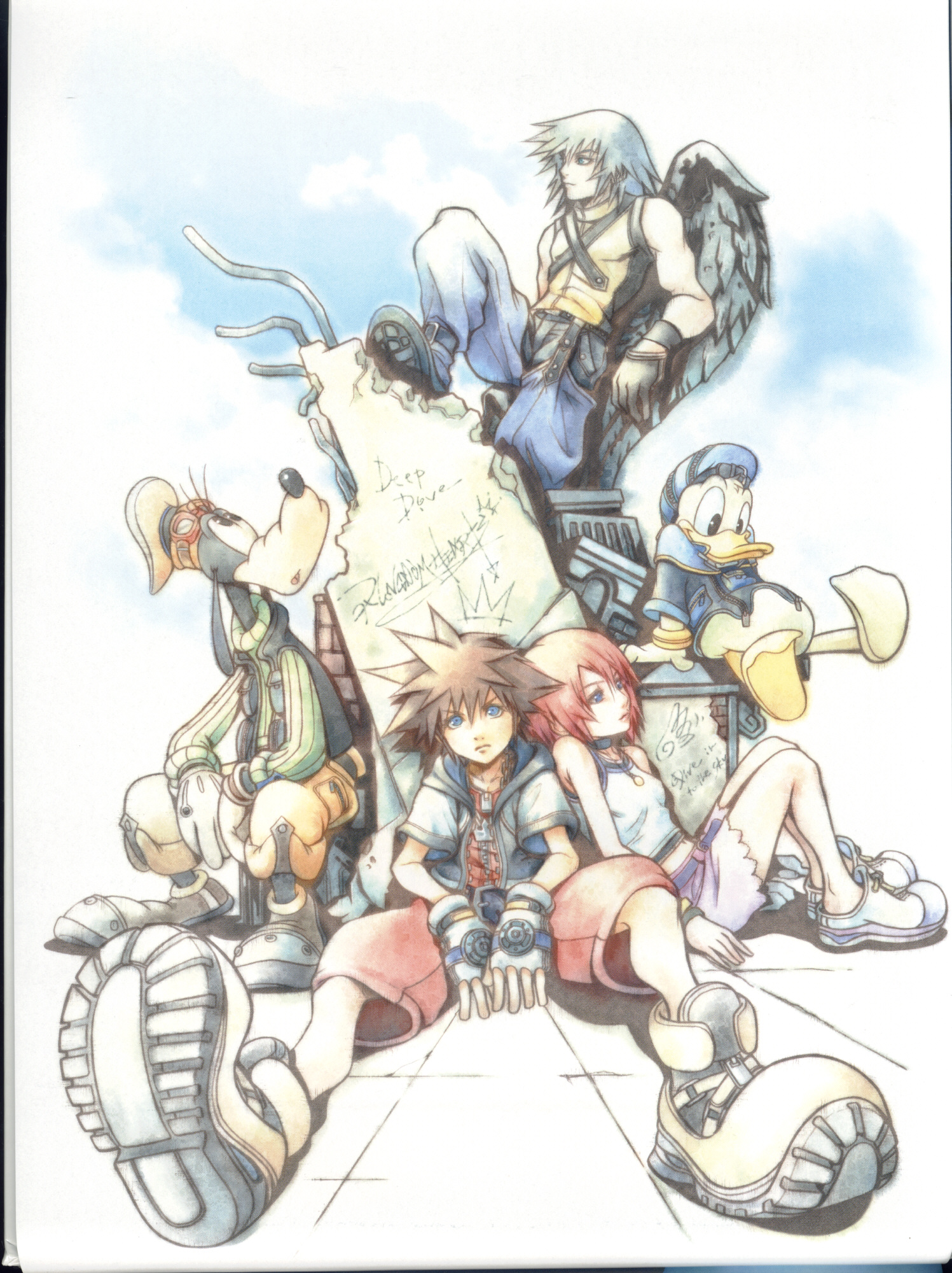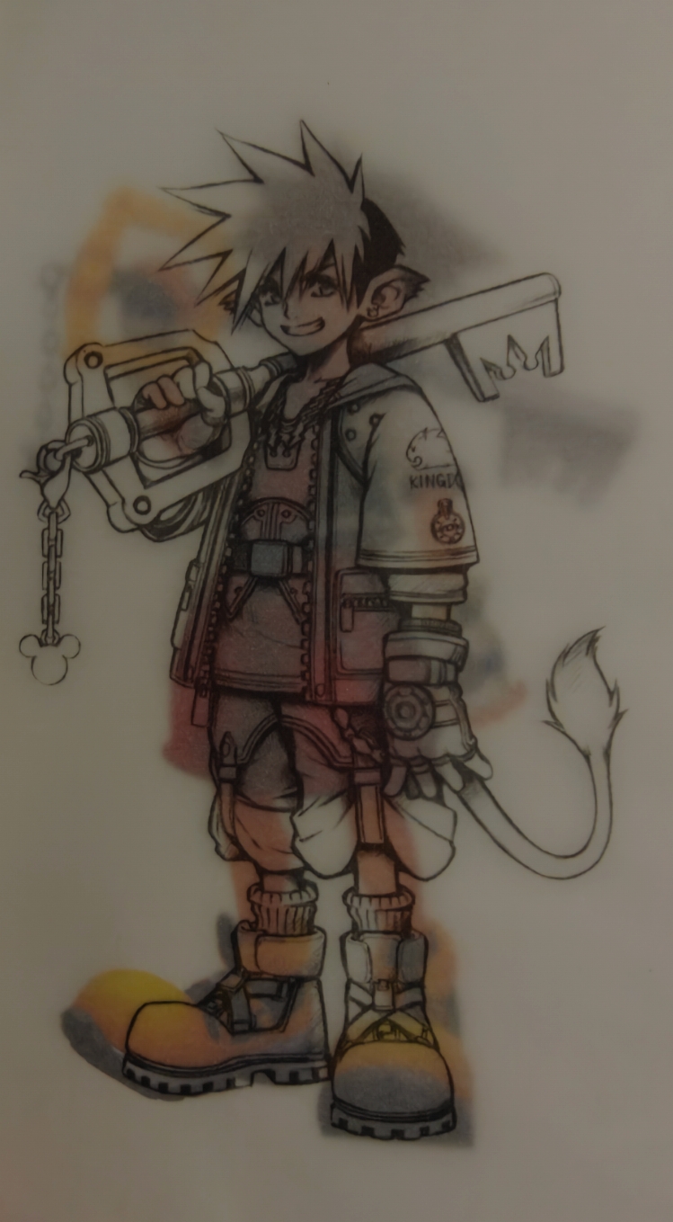 The KH HD 1.5 Remix Limited Edition for PS3 includes a short artbook that has this image on it, printed on a transparent sheet so it can be overlaid on the next page which features the final art for Sora. It's really cool to see the differences but there's no real way to digitize the experience.