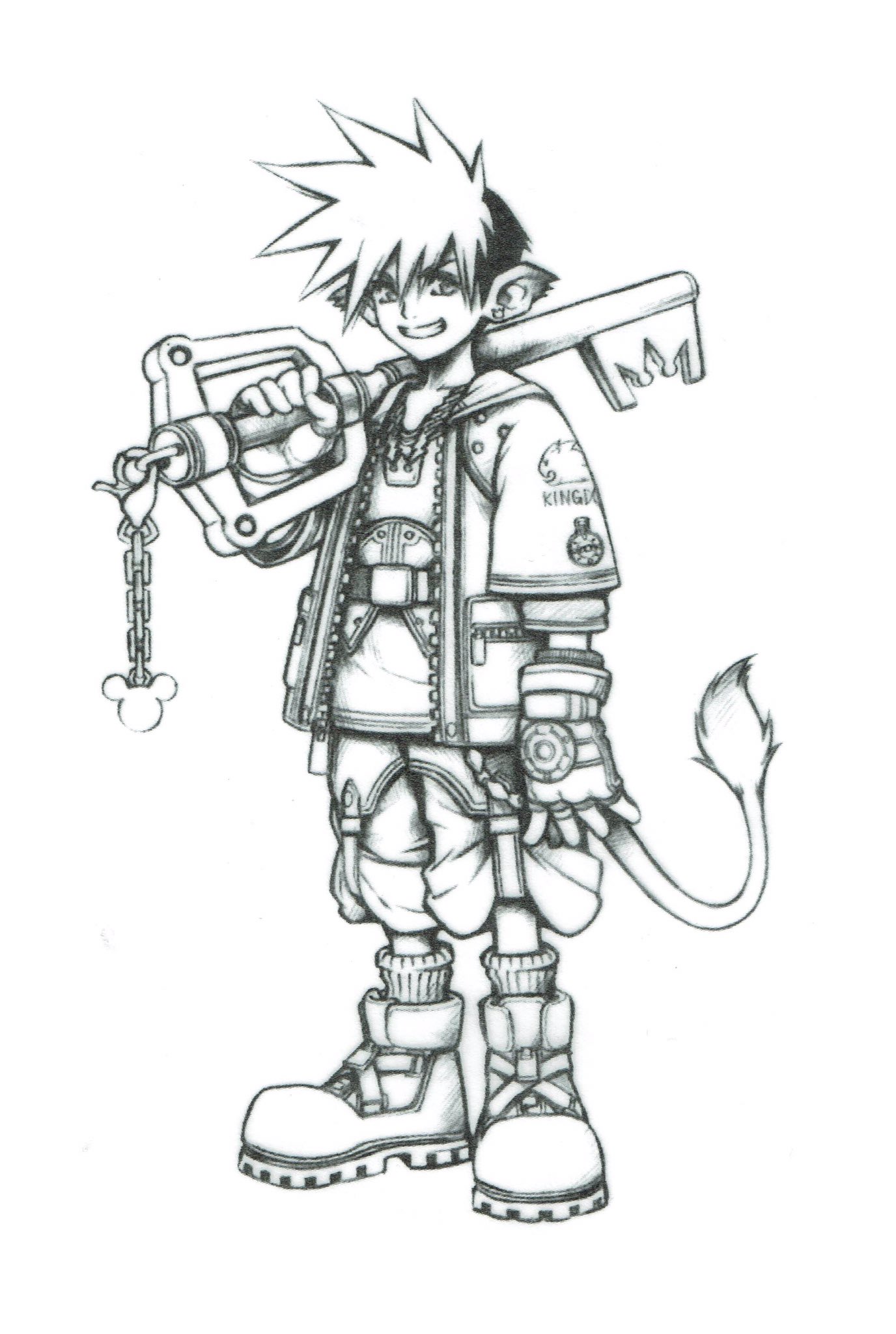 Just wanna give a shout out to a really cool piece of KH art, this image of an early Sora concept back when he still had a tail.