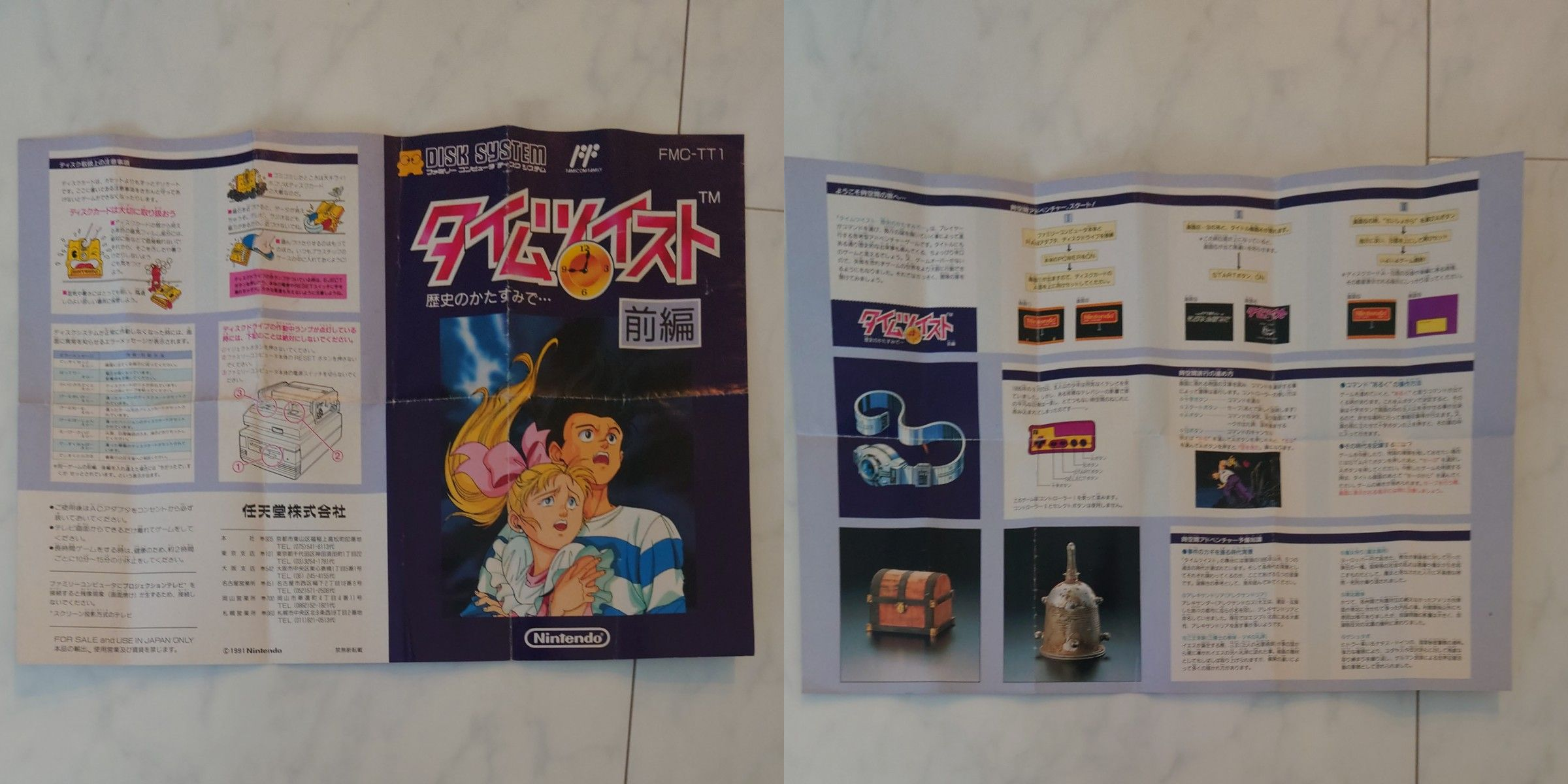 >>12501741The manuals weren't printed in the store. They were double sided, sheet-of-paper-sized prints the store kept in stock. They are the same glossy material as regular manuals. Picrel is the one for Time Twist disk 1. This is the reason many FDS games have two versions of their manual. One is the booklet type that came with regular copies. The other is the non-booklet printout type that was available if you got a game from the disk writer.As far as I know, there was no such thing as buying an empty disk. You bought a game, and it came on a disk. Price varies from game to game, but 2500 to 3500 yen was the standard for disk system releases. For reference, cartridges were usually in the 4000 to 6000 yen range. RPGs and "adult oriented" games like casino simulators tended to be more expensive and were priced in the 7000 to 9500 yen range. Games being more affordable was a major selling point of the disk system.>>12501746All Night Nippon Super Mario Bros. was a special release that was given away via raffle. You couldn't buy it a regular retail store.