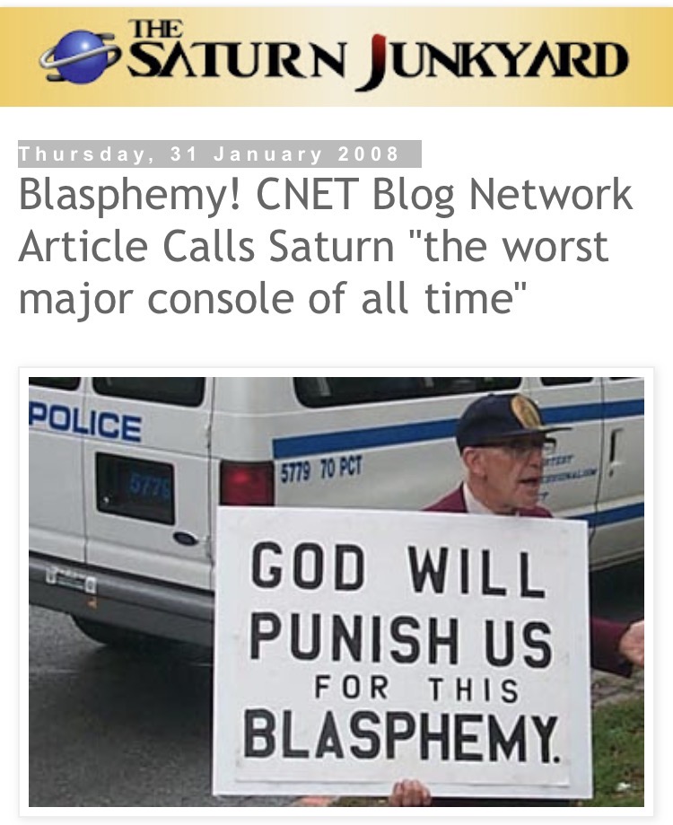 Yes. This article says that the Saturn was the worst major console of all time...http://blogs.cnet.com/8301-13506_1-9861122-17.htmlIt was written by:Don "Dumbass" Reisinger"Don Reisinger is a technology columnist who has written about everything from HDTVs to computers to Flowbee Haircut Systems. Don is a member of the CNET Blog Network and posts at The Digital Home. He is not an employee of CNET"I can't even BEGIN on how wrong and badly researched this article was. It is striaght up 2.0 shoddy journalism. Donny boy must have gotten all his info off wikipedia and then wrote the story around the title. I am pretty sure he never even owned a system.Fear not loyal Saturn lovers. Others who have calmer heads than I have already taken on the task of correcting this wrong.People have posted VERY long comments pointing out the errors in this article as well as listing the many worthy games released on the system.There are a few choices ones to read."So please Mr. Reisinger, do the world a favor and quit writing articles until:A. You learn to research your subjects.orB. You become a competent individual. ""How exciting. Maybe he should do an article showcasing the good games for the 3DO and Atari Jaguar"And of course this is the same guy who claimed the SNES is the greated console of all time and didn't even mention the Dreamcast. He ONLY mentioned the Playstation because a "handful of Sony fanboys will cry foul" if he didn't. And his second place trophy goes to the NES... Wow.... My Nintendo fanboy sense is tingling.The Saturn has alot of fans on the web Mr. Reisinger. Please do some actual research before you do your next "tech" article.I can't help but think that Bernie would be proud of this article.