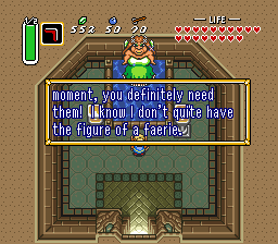 >>12512471>>12512594Went over to my buddy's place one time and the only Zelda game I played was Link to the Past. His brother was playing OoT and the great fairy scared me for some reason, I thought she was a demon or something.Also, his brother would refer to the compass as crack, and now I can't play OoT without thinking to myself "You got crack-cocaine!" anytime I pick up a compass in a dungeon
