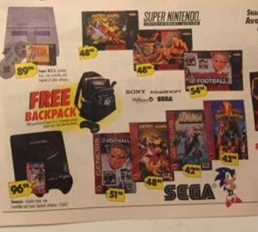 >>12529258It was crazy back then. The console comes with tge base 6 games plus limited time bonus game (tazmania, jurassic park, etc) plus EB was giving away sonic 2 with every purchae just because they had a lot to dump.You could literally walk out of the store with a genesis and 8 games for $99.