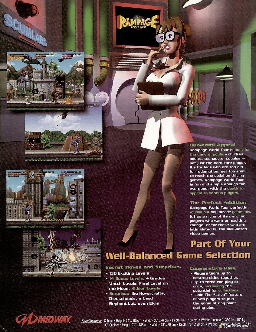 I grew up playing Universal Tour on PlayStation, which has always made me wonder why this game tends to be overlooked when people talk about Rampage. It has several cool characters, such as Boris, Ruby and the two giant aliens. Plus, it has great pre-rendered graphics.