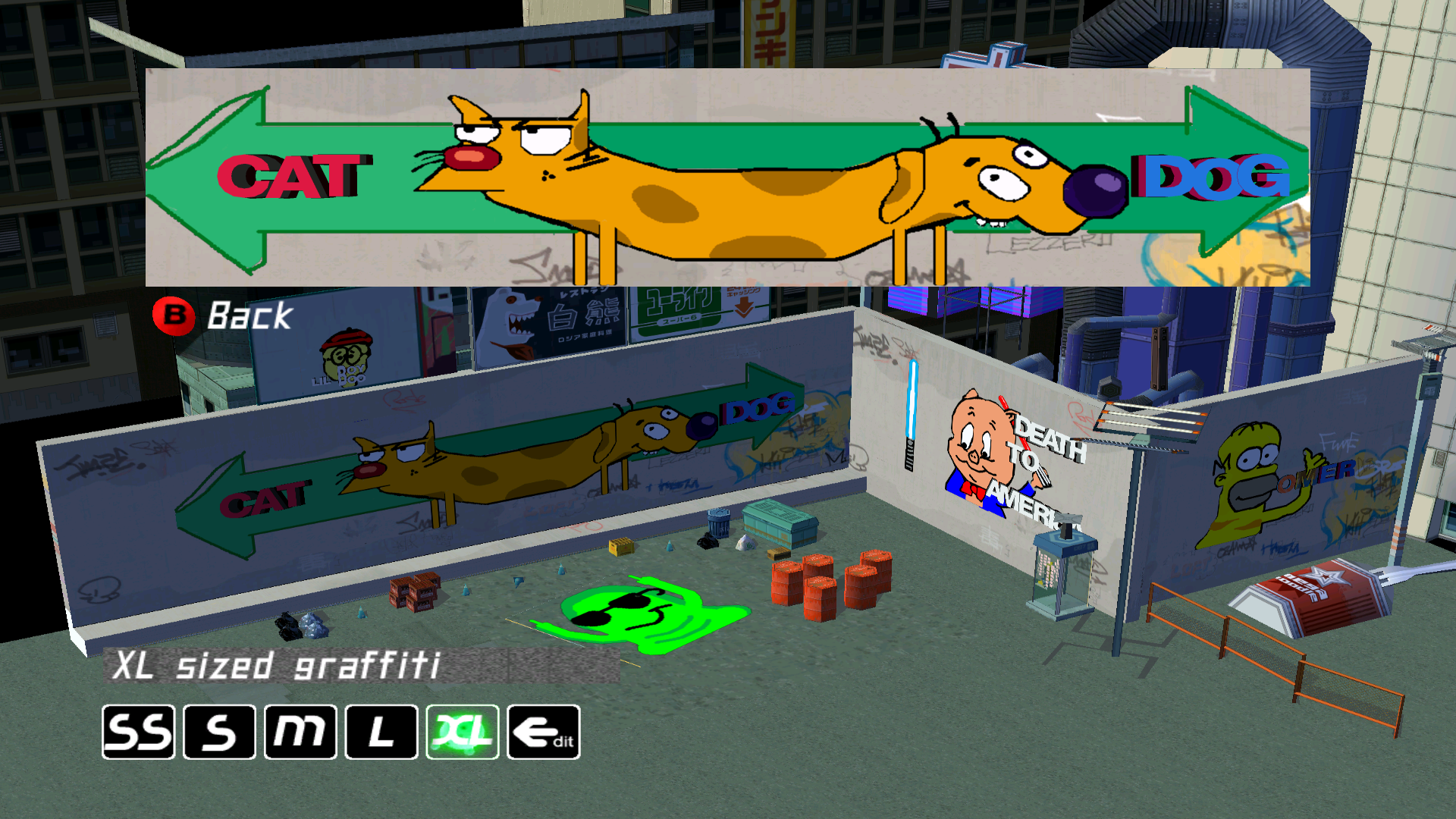 >>12528728For JSR on Dreamcast, you could create your own graffiti and then upload it to SegaNet. I downloaded an XXL version of the Simpsons family. I've since lost the save file, and since the servers shut down in 2001, all those graffiti are gone.
