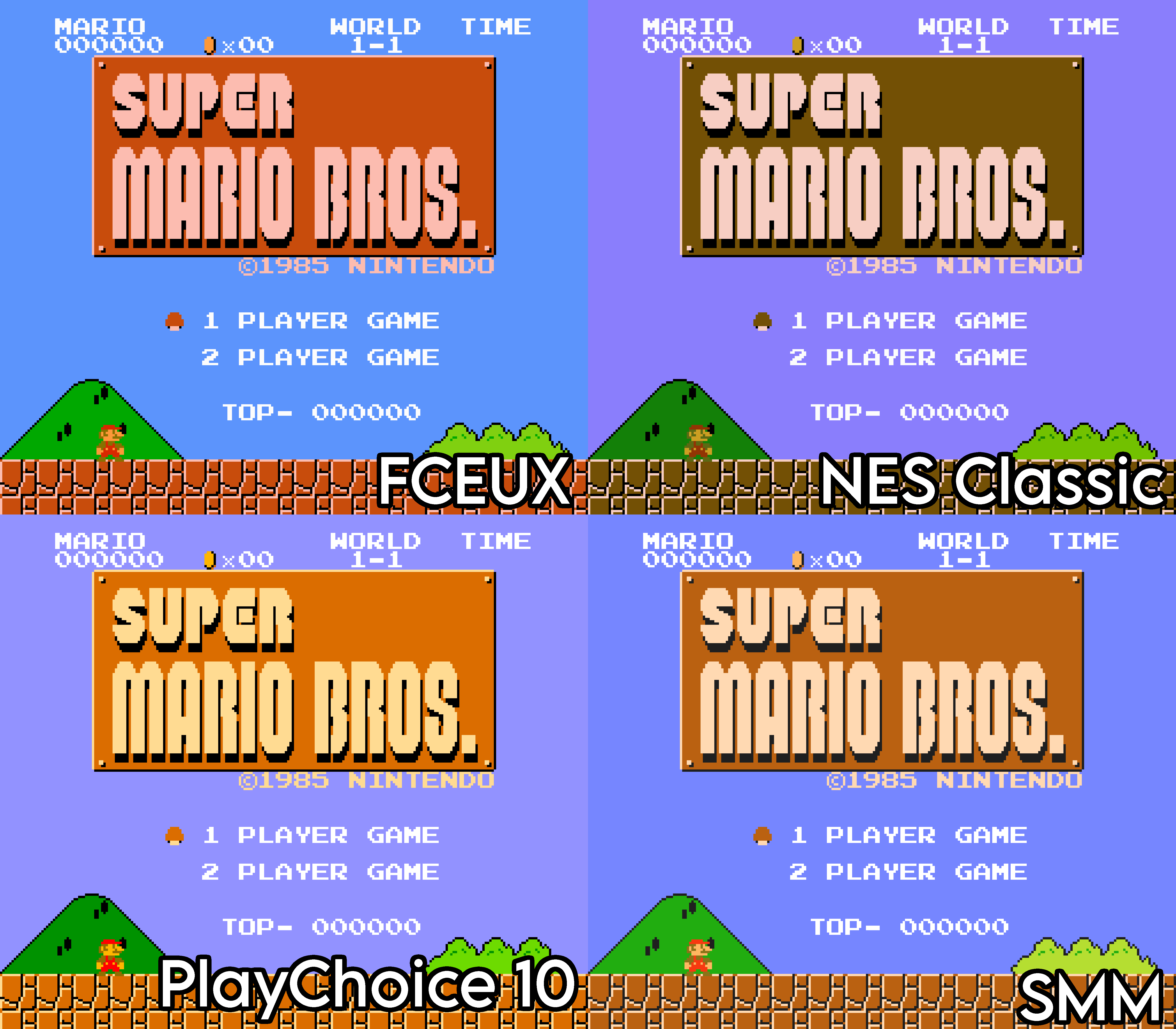>>12537052Bottom right is the closest to how it looked on my TV. I never saw a purple sky in Mario Bros. until I played on emulation.