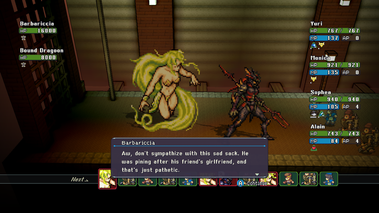 I am 30+ hours into False Skies, currently in the Lunate Ruins and it is one of those dark hellhole maps where you can't see shit (+ pitfall tip). I liked the midgame? twist a few hours back.My team has started to get into Tier 4 classes and coming online. The ability to spec into a class who can drop a save point within certain rooms inside dungeons is a cool concept. And save points being created causes a monster attack so that is one method of fighting optional enemies/bosses.