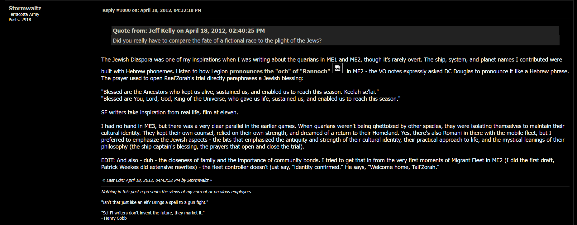 >>3955775>Samara might beat shepard. Shepard without team or henchman isn't that greatShepard solos Wrex in ME1 and ME3. But yes when it comes to leading a squad 3 coordinated guys Shepard is absolutely the best in the business>more intelligent than the best scientists everShe's an enhanced clone of Henry who is decent IQ. He poured billions of credits into her creation. By the 22nd Century it shouldn't be a stretch to discover which combination of genetic factors significantly raise IQ the most. I'd estimate Shepard's IQ around 180 despite coming across as a stereotypical military jarhead at times. Being Shepard is different than playing Mass Effect on your home gaming console. There are no continues, no mulligans, he only gets ONE chance. It's not like he can say:>"Oops! I picked the wrong weapons and squamates for the Collector ship mission. I'll just load my game and try a different strategy"Miranda is the only human squadmate who should theoretically have a higher IQ than Shepard, presumably multiple deviations higher. She was designed in a high-tech lab from the ground up to be "perfect" in every capacity with all her lower IQ failures discarded via postbirth abortionGoto might be higher IQ than her. Unclear how much her illegal Greybox implant increases IQTIM is very high IQ too but a hard number to estimate given the mysterious factor of alien technologies. his IQ essentially doubled with his Raper enhancements he received during the 1st Contact War in the Ascension Novel>Are Krogan stupid?Very. Okeer, Grunt and Wrex are rare exceptions. The only race dumber than Krogan are Vorcha (unless we count Kreepers, the most autistic race)Comment too long. Click here to view the full text.