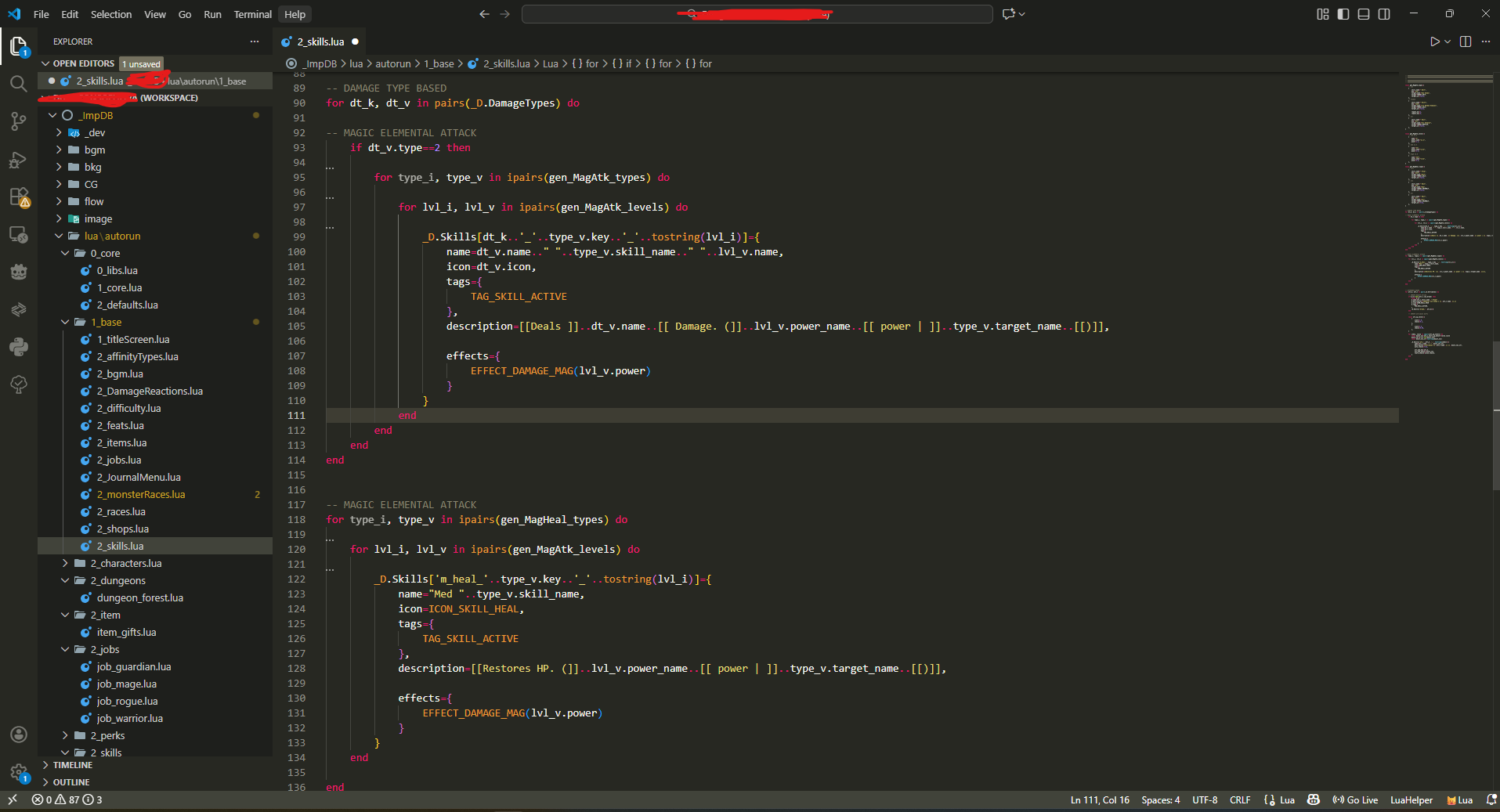 >>3784333>Solo project?Yeah, for now. I'm about halfway done with setting up all the core systems like the inventory, and party member and enemy AI. Once I have enough stuff set up, I'll put out a request for team members and stuff.>How often? Start with 2 attacks in the beginning and 10 attacks at the end of the game.That could work. How would you calculate that? 1 / character level? I've also thought about copying Ragnarok Online's attack speed calculation, to some extent.>Are you trying to say that each skill needs all attributes?I set things up to work like this, I hope it helps:>3 core attributes that are the ye olde strength, dex, and intelligence>Derived stats use these in some way>E.g: every point in strength = 5 hp, every point in dex = 2 non-special damage>Skills could use the attribute or a derived stat for whatever it wants to do>E.g: healing skills use the special power derived stat, which is 2 points for every point in int, plus/minus any special power modifiers>>3784605>>3784687Keep up the great work!