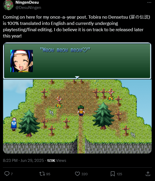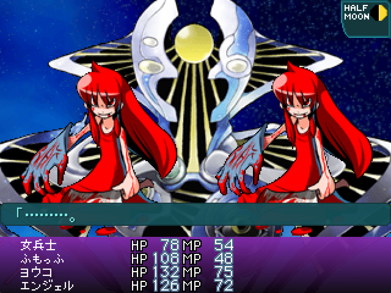 B. B. Rider got a translation this year.The combat system sucks. The story's slow at first, but the protag's fun enough it's hard to hate it just because of him. It's very 2000s anime when it tries and fails to be funny, but the ending's one of the most impactful I've played through. The art was all done by the guy who made it back in the 2000s, and while it's rough, it's got enough soul to it that I like it. Also, it somehow has vocal opening and ending themes despite being a 2000s RPGM game.https://drive.google.com/file/d/1S6tFYQhfTnx7vu2kURE9Vqn6ue-lZUX-/view?usp=sharing