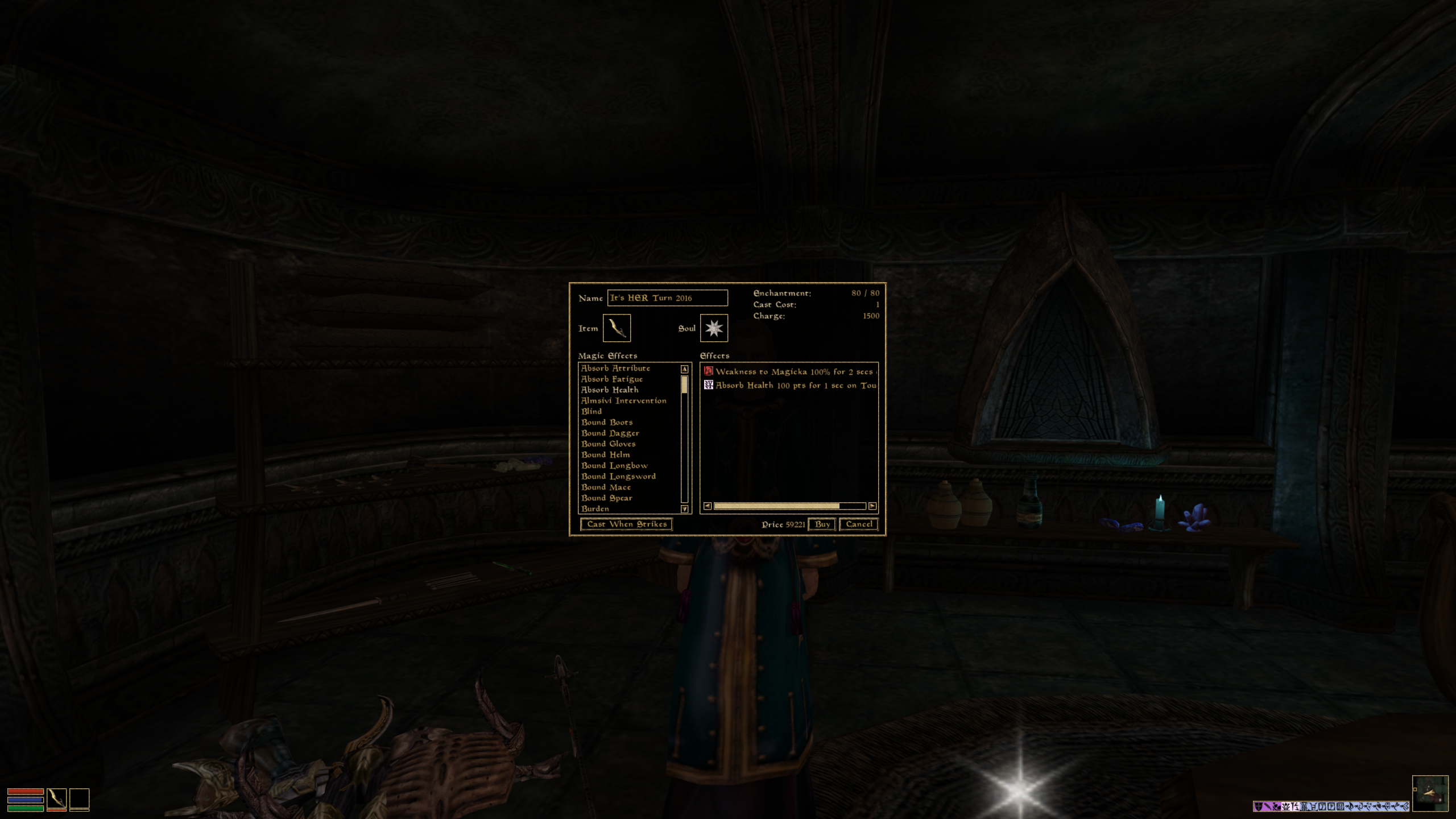 >>3844077The super sleeper hit early power is Berserk. Draining Agility to 0 lowers your max fatigue and then it gets fortified by 200 points. At level 1 where your max fatigue isn't much this can create a really solid ratio that makes you good at everything. It's very noticeable with enchanting prices since fatigue ratio benefits are % based so it cuts a lot from the enormous constant effect prizes from NPCs.Of course later on it's useless.