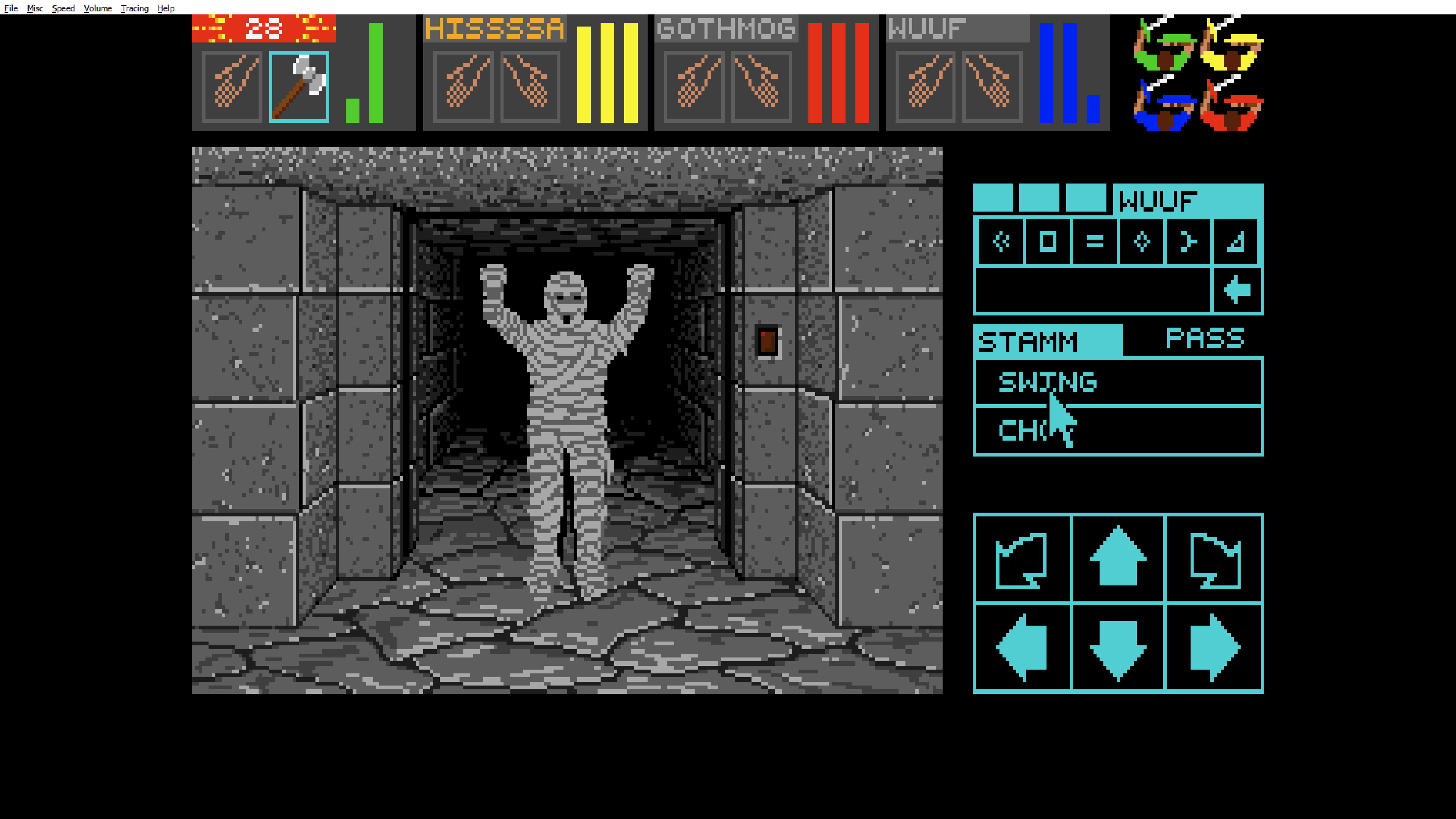 >>3866211>>3866212I’m playing the original Atari ST version using CSBWin. I think you posted screenshots from Dungeon Master: Theron’s Quest, which is more like a sequel or a significantly simplified, cut-down version. As far as I know, the SNES port isn’t that bad, but I can’t imagine playing it without a mouse.