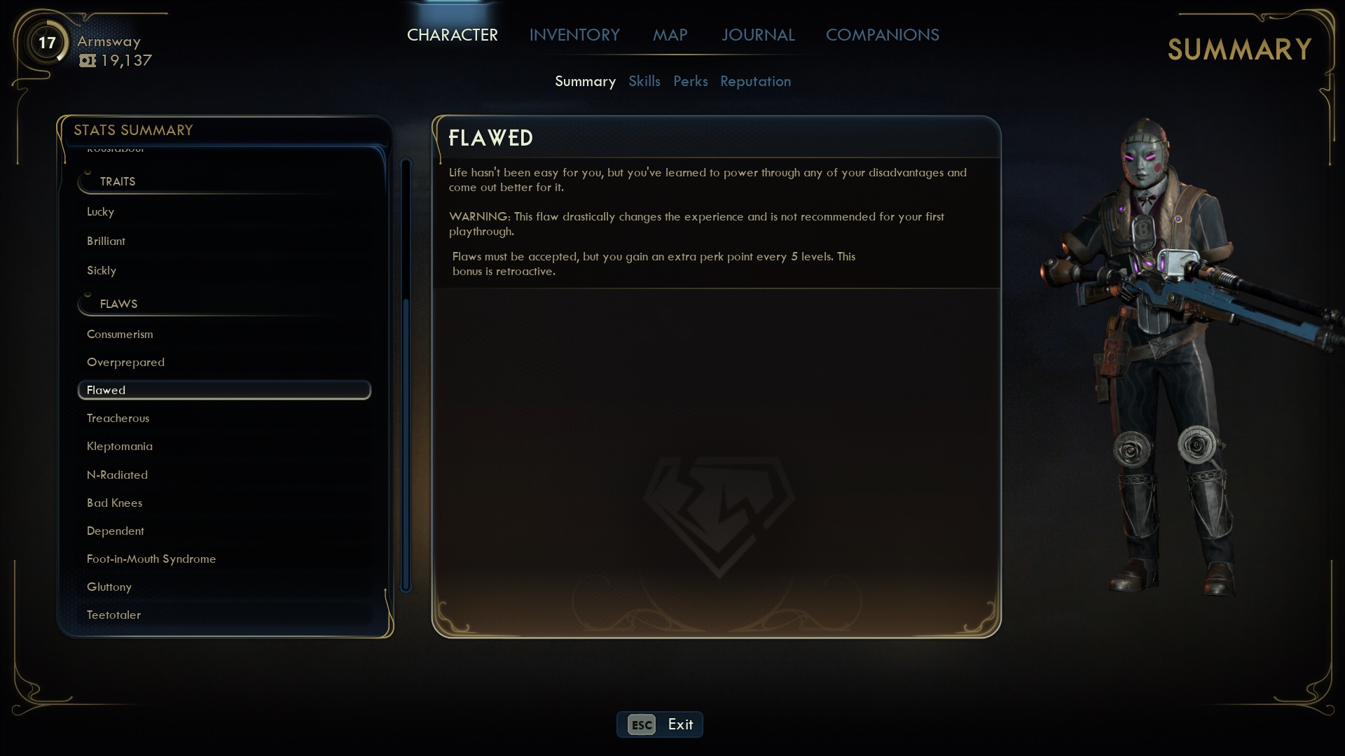 Just finished it, been taking my time with the game desu. It started off slow but it becomes fun when you get off the first planet and can go do anything you want.i took the easily distracted flaw early on so I never had the skills that I needed to easily bypass stuff with hacking etc but it was a fun playthrough, I have no motivation to do another playthrough though