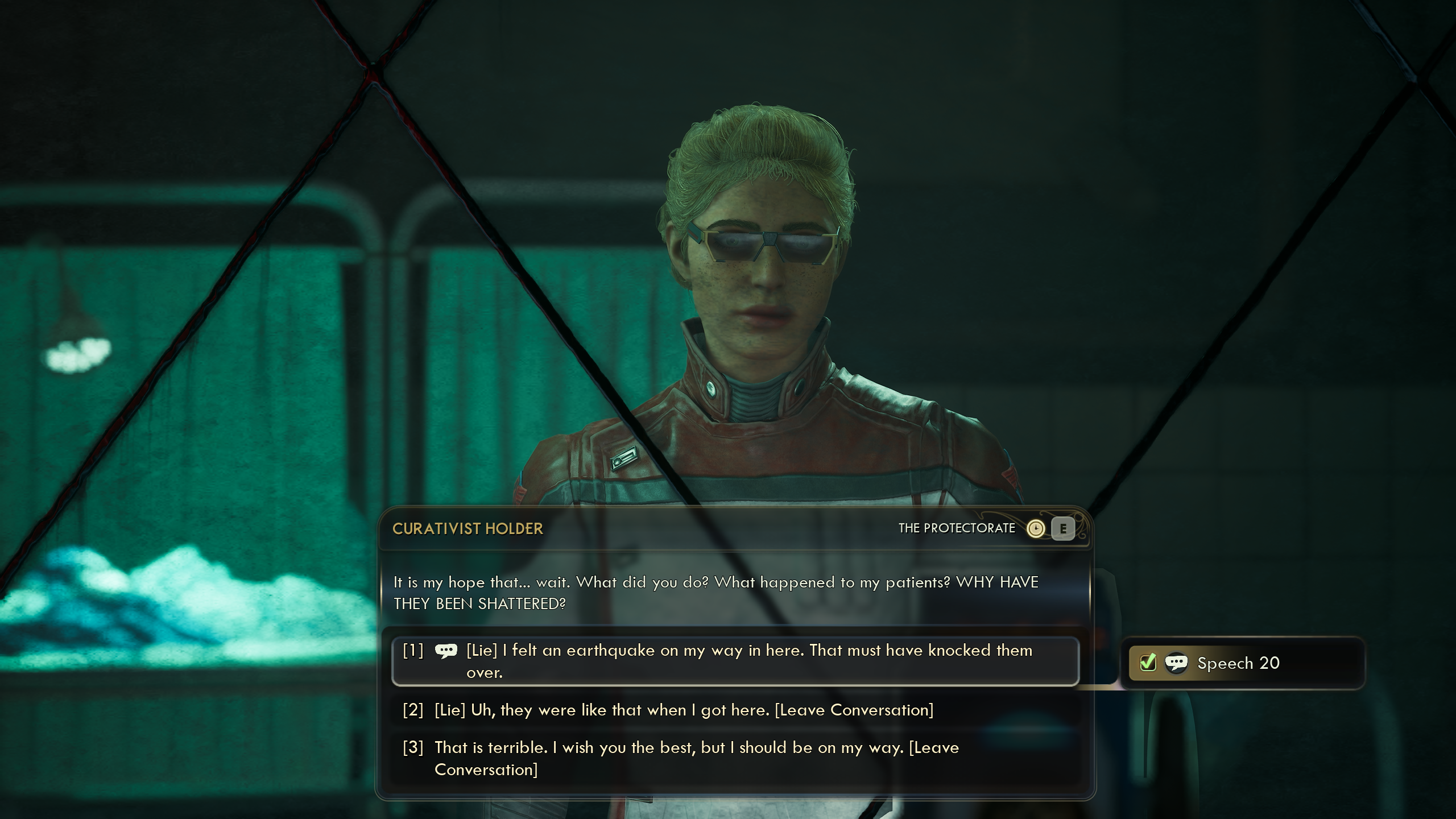 >>3875397There are several 20 speech checks towards the end. One I think is required to convince the bad guy, which also requires multiple pieces of evidence, other skill checks and the right choices.