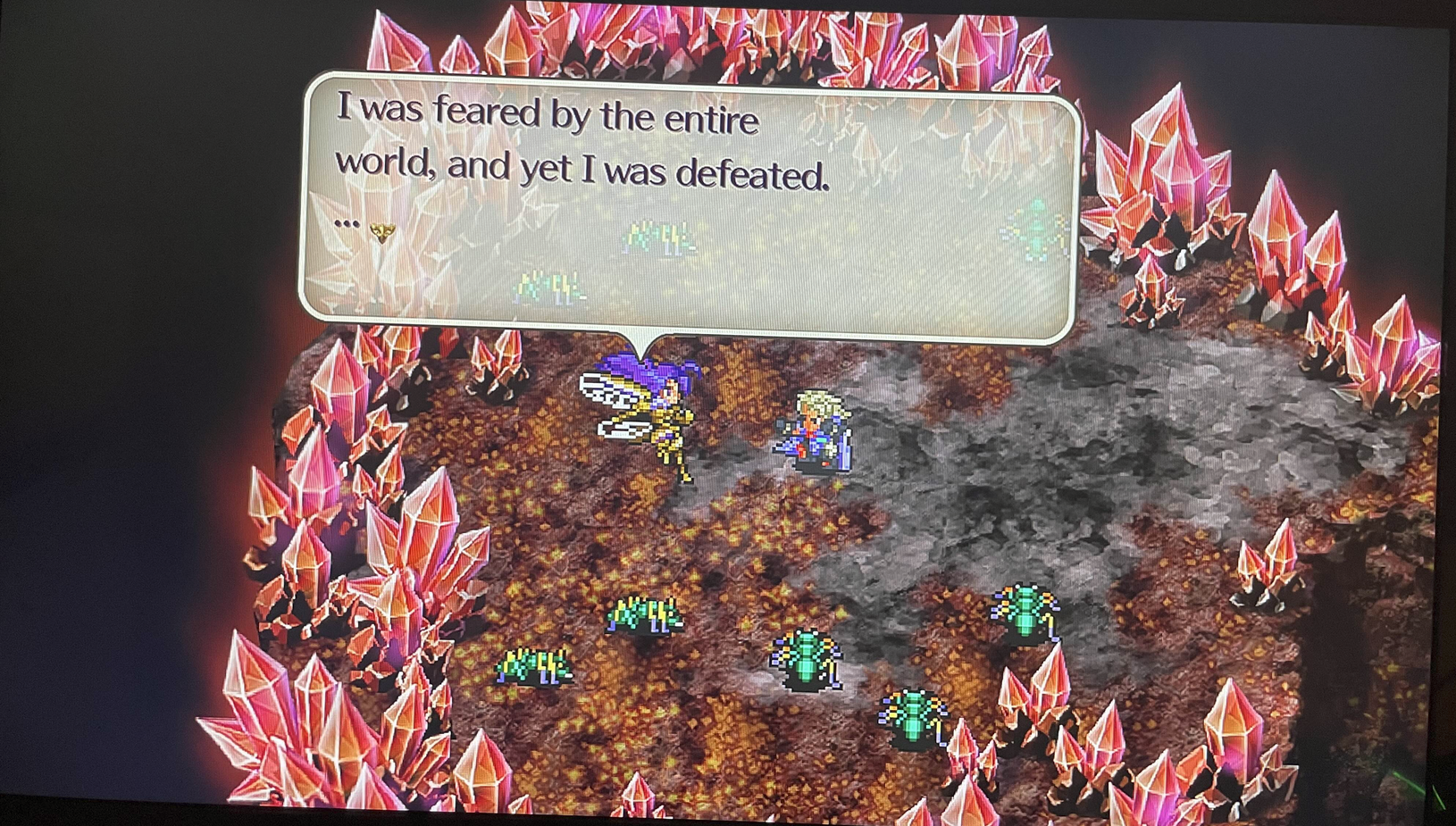 >>3907609I have no idea why the remake added all that extra generic JRPG yapping during some of the seven heroes' fights but did absolutely nothing to expand some key NPCs like Sagzaar and Oaive which are stuck with their exact original SNES scripts where they repeat one thing over and over again.Granted, that lack of consistent direction is a huge problem for the game as a whole but leaving those NPCs completely untouched was one of the most jarring decisions for me, especially when they also added those new cutscenes from the stage play so people who played the original are baited into expecting that, logically, they'd also have expanded their in-game script to elaborate on and acknowledge those new lore additions, but no.