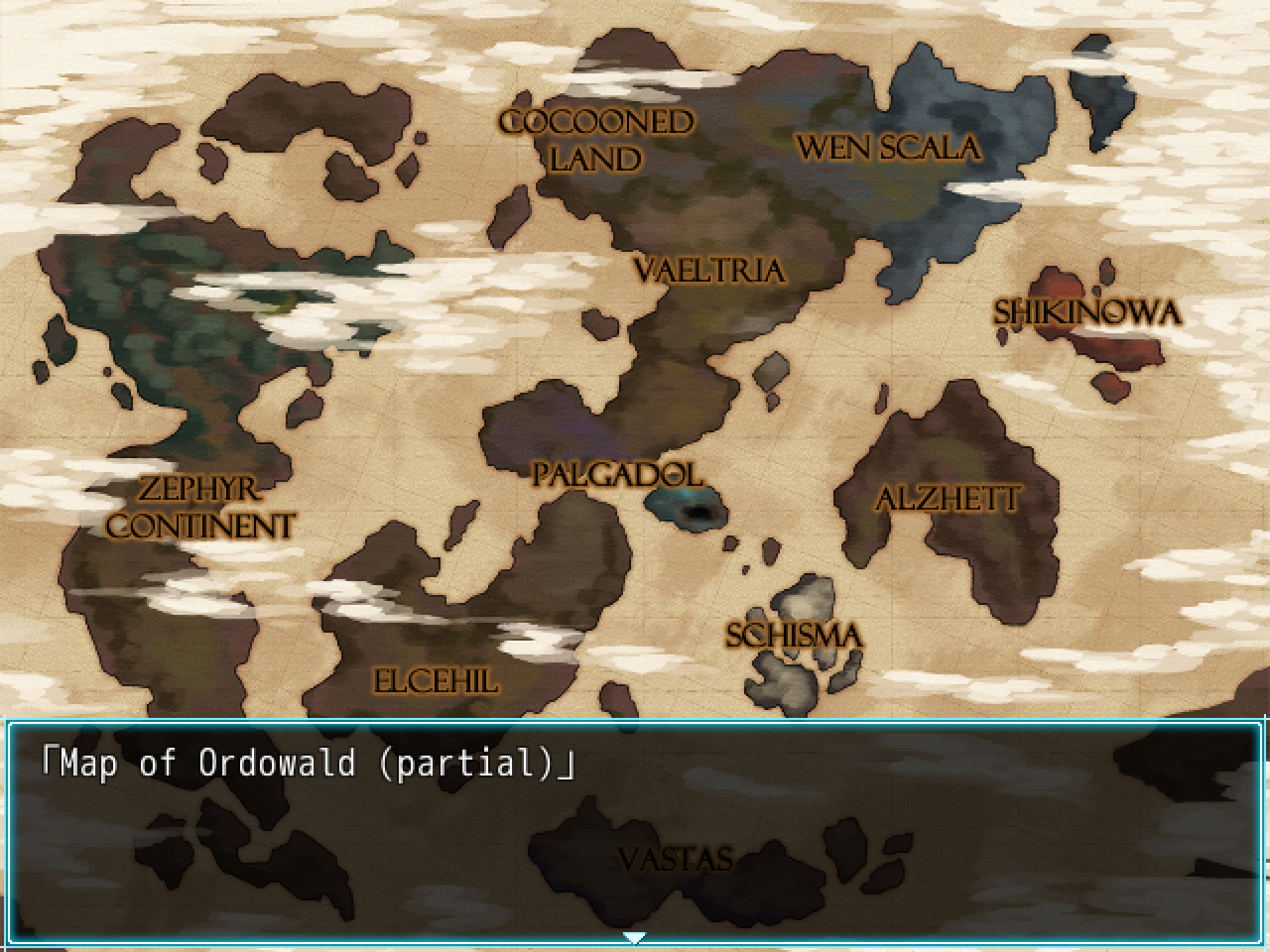 For those keeping score, with main era of myth games references in spoilers. You can basically add Ruinswald to all of them though, with early games being more obvious about it.Blight = Vaeltria (postgame Palgadol) AtlineAwake = Palgadol Liberty StepColony = Schisma, Alzhett Brand of Ronis which didn't come to be which is probably why it's got the best story, fight meAsylum = transported Wen Scala Silver TowerKludge = Vastas Erra Saga, Liberty Step, Ghost PathL. Depth = VaeltriaInnocent Rules = Outside of OrdowaldThirst = ShikinowaNext mainline title probably on the Zephyr continent.