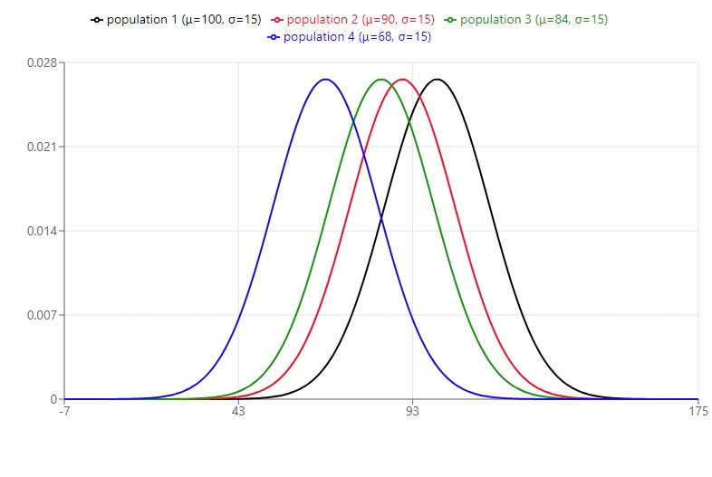 >>3918385>Your whole point is "actually sub 115 isn't 85% of the population, it's 95%" which is an insanely retarded approach to trying to argue people are stupidNo. My explicit point was simply that different populations have different population means.My implicit point was that this isn't the old internet of 30 years ago, and the people that are online now come from many different populations with means that aren't 100.The population with 90 mean would need to be in their top 4.7% to reach 115, the population with 84 mean would need to be in their top 1.9%, and the population with 68 mean would need to be in their top 0.087% to reach 115.>which you only hold because you want to feel special and smart and think of yourself in the top 3% of all humanity despite having nothing better to do with your life than argue about meaningless bullshit on 4chan.The rest of your post was just defensive over-reaction and projection, because you clearly didn't understand what I was saying.
