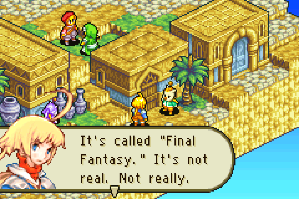 >>3915957Aside from the Mother games I've never played any real JRPGs, but I've been off work this week and picked up Golden Sun on GBA. Already beat the first game and transferred my data over to its sequel, the Lost Age, which is a pretty neat feature. Excited to see what happens when my party from the first game shows up. Not a very hard game in terms of battles, but the puzzles and dungeons are actually very complex at times. It reminds me of Zelda, which is cool. The Djinn system is awesome too. Anyone on here played it? I think it was somewhat popular in its day but it doesn't seem to get talked about much now.