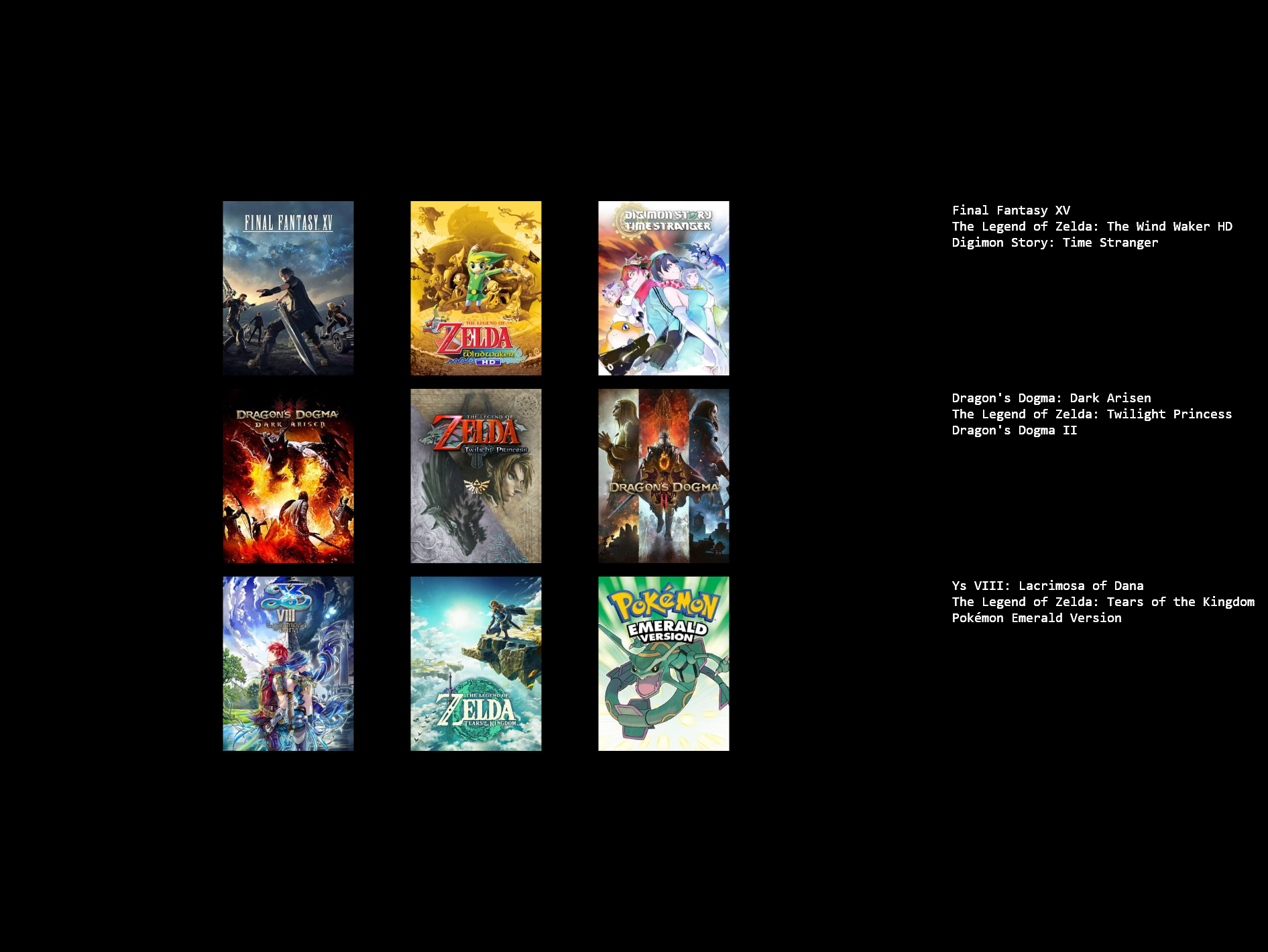 >>3932765Solid list though a bit too much ff particularly x and xiii