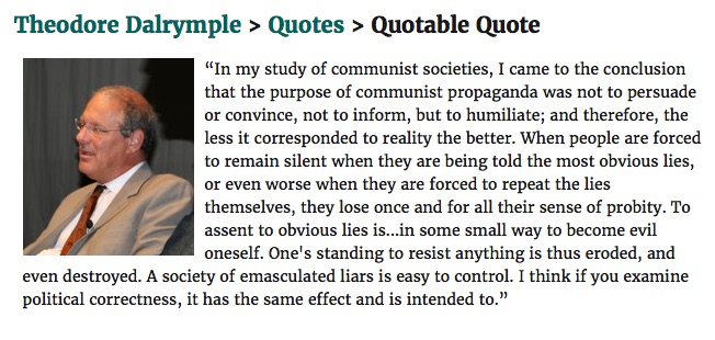 Didn't know the guy or quote, but this has been discussed in plenty of fields. Basically for political 'science' (lol) to biology. Repeating obvious lies breaks the brain oversimplified. Literal husks. Even better for the leaders, the buckbroken will defend system and lie with their life. Some guy called it hypernormal. Just shows how important aristoteles is.