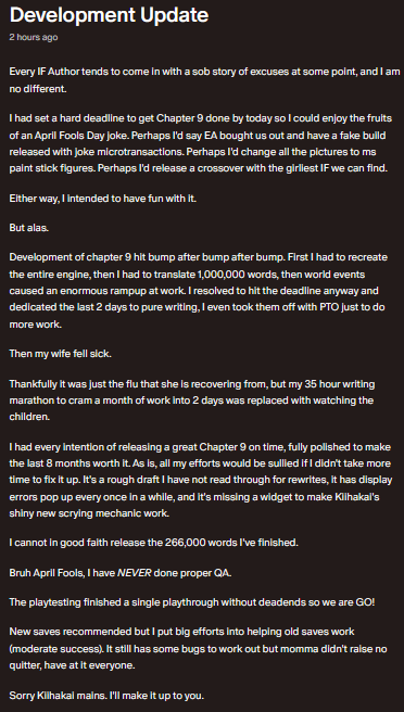 >>3955947>I think that anon was comparing CoG to booksYes, hence the term “Author” was used instead of game developer. Next time silly anons should read more carefully!