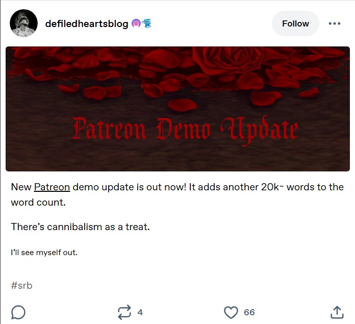 Alert!Defiled Hearts Patreon Update!!You can eat someone out in this update! :D