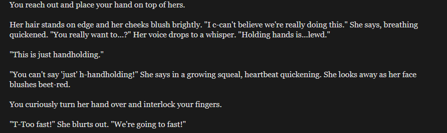 >>3956682Glad to hear it, refreshing your browser should push all the fixes I've done so far too. Feels good to be able to talk about CYOA development in the CYOA thread, something the seether cannot do because they don't write.