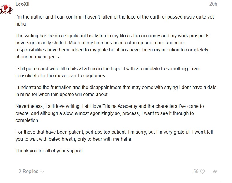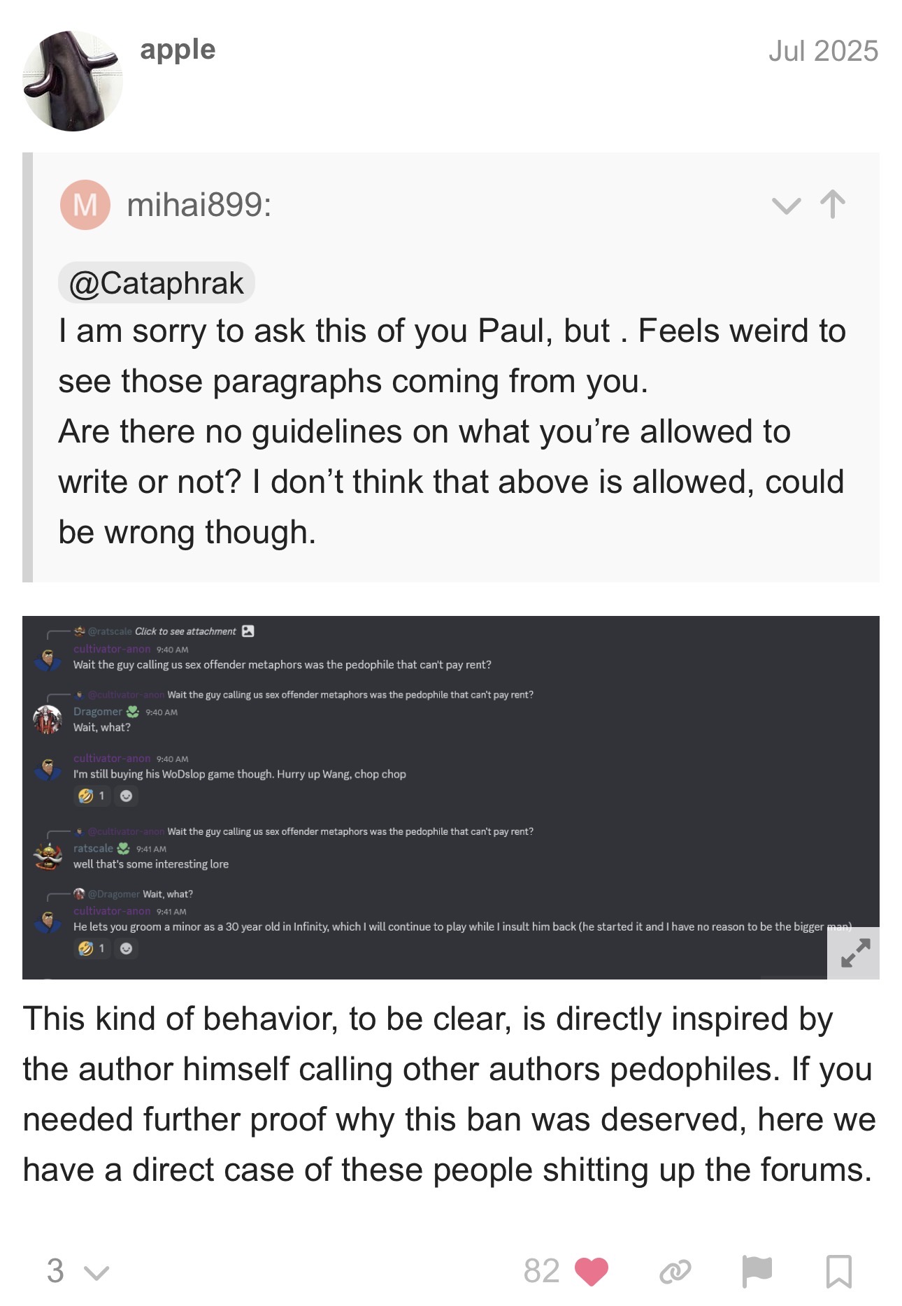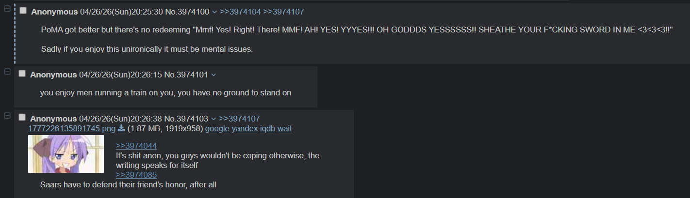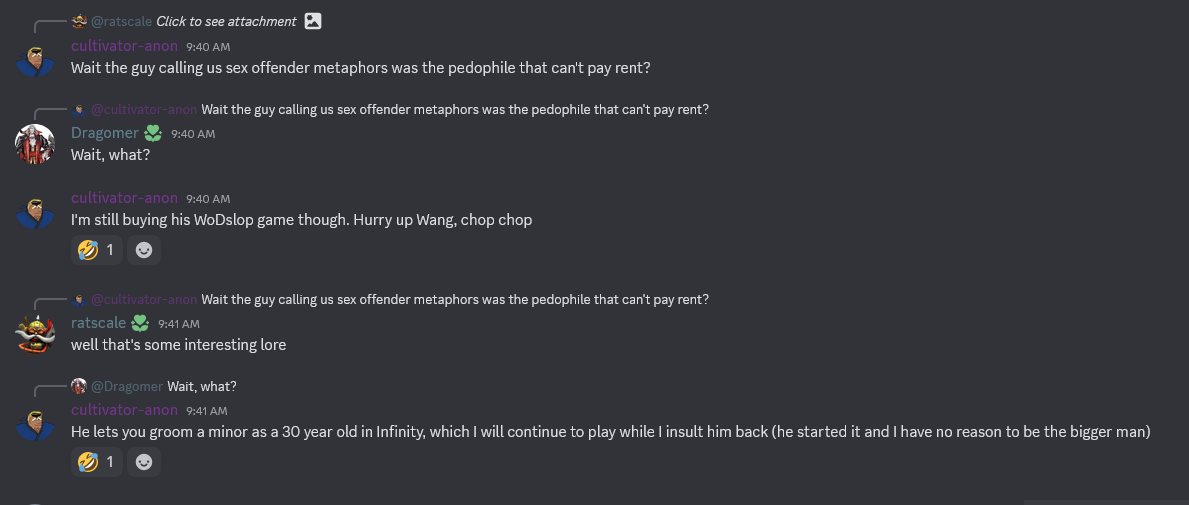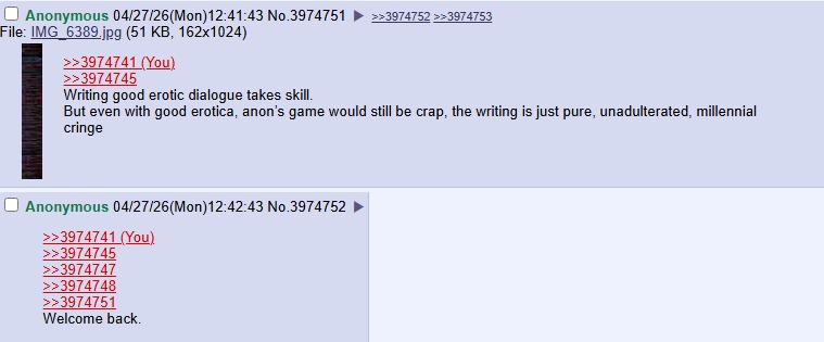 >orcgod puts out another update>over 2 million words now!>aura fags still spamming and flooding>asking the same exact questions that were asked last threadhttps://forum.choiceofgames.com/t/a-shriek-of-ash-and-fire-1-wip-approx-90k-update-2-million-total-13th-april-2026-2-07-million-on-patreon/154814/227wow! it's like don't even play other games!sad! and this is a dude who went out of his way to defend anon from bryce and the others lol