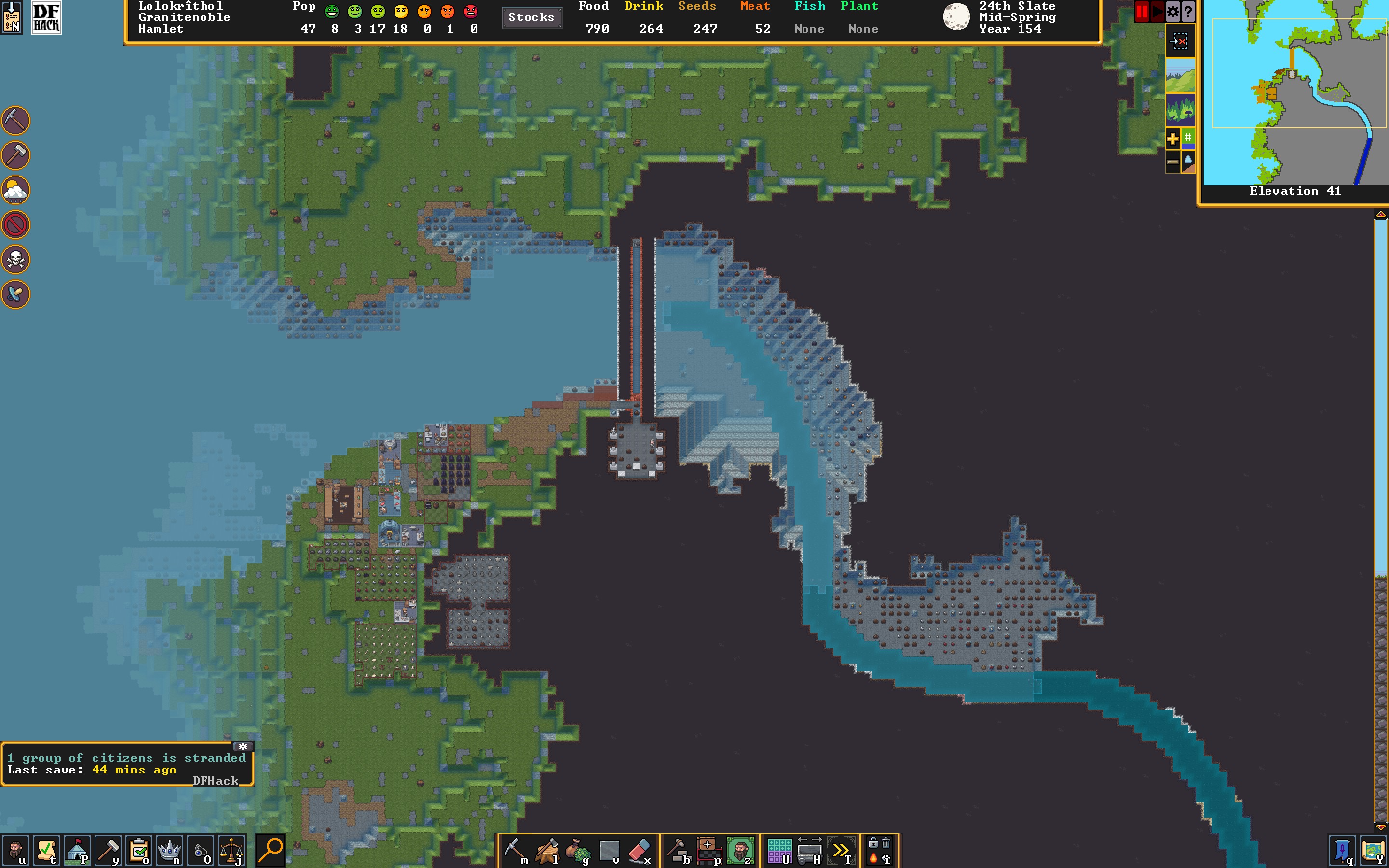 >>2298721Not Flooded yet, but I've also not blocked the stream. I'm digging out the reservoir and canyon at the moment. I want enough volume to properly flood things on release. The plan is too bring the water down into the final fortress. I suspect my dwarfs are competent Hydro-engineers, so there's no reason to worry about flooding. Only one has drowned so far, significantly fewer than those who have died to falls over the 15 layer tall canyon edge.