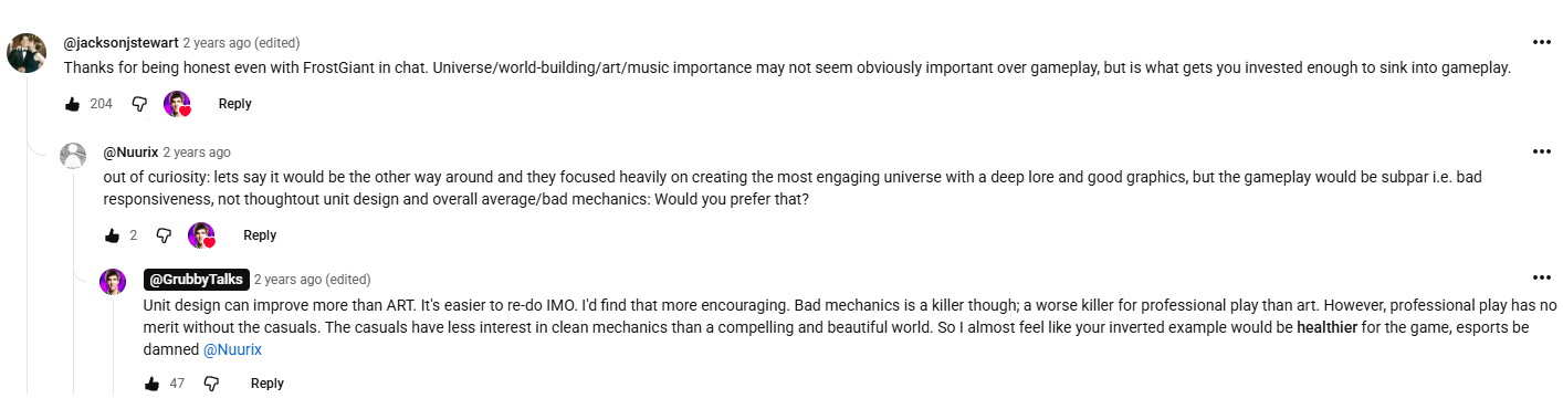 >>2371454They didn't listen to ANY criticism from the moment they announced the game. They vehemently opposed any and all idea that maybe a micro-focused marvel-esque colorful quippy RTS that's a shameless copy paste of starcraft and diablo factions is not a very good idea. They told everyone to eat shit.I distinctly remember some early tester leaving feedback that the game feels and looks like a marvel movie and the response was "this is intended"