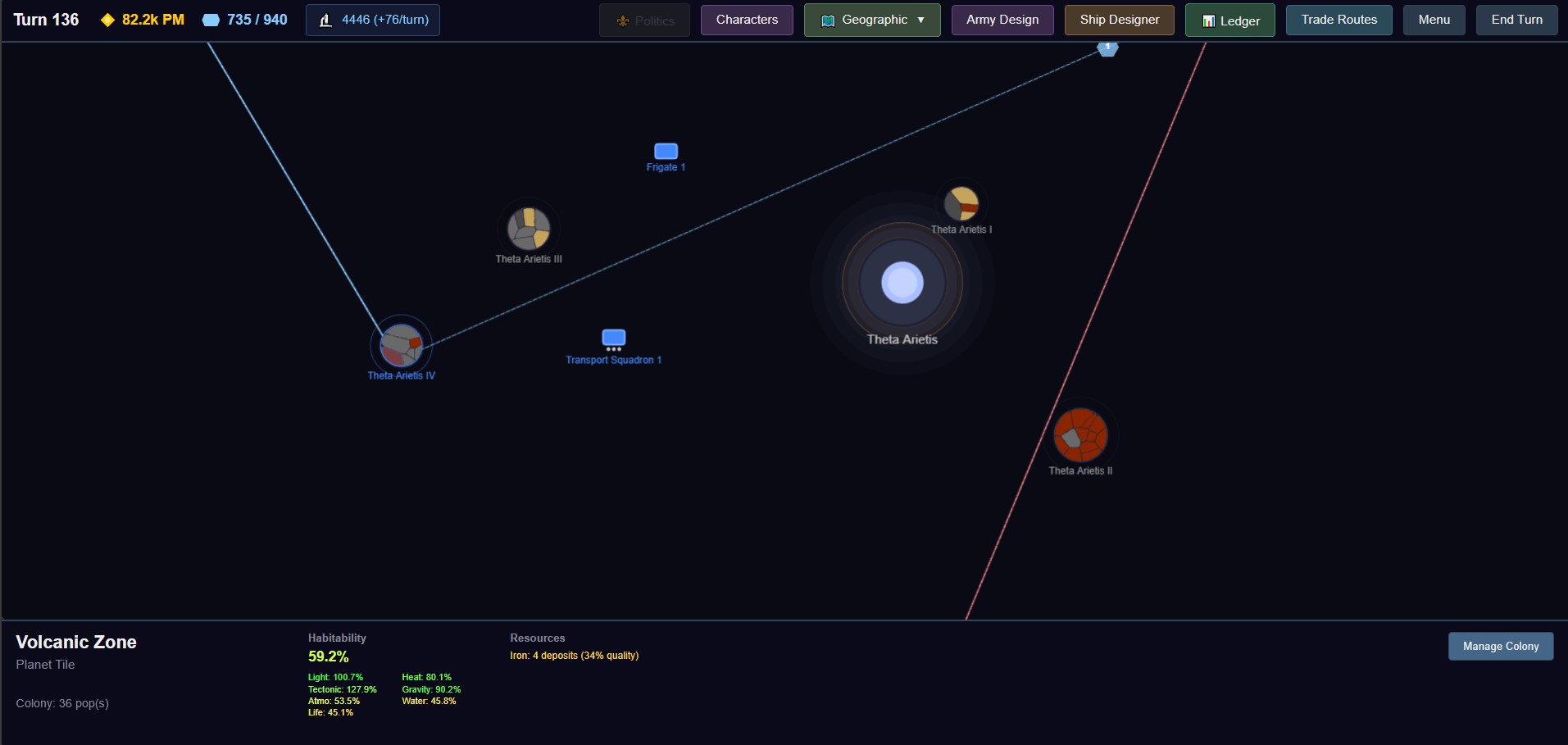 >>2328939Yeah I've got lots of work to do on the AI, right now it's only in a nascent state (doesn't do any research, doesn't expand after its first colony, doesn't do any internal politics, diplomacy doesn't even exist right now, can't build ships). But now I understand why it's so hard for 4X AI to be good, it has to prioritize between so many factors. Even with just one-province economic management and trading it doesn't quite know when to invest more into buildings vs workers, which buildings (cheap schools or expensive pharmaceutical plants?), when to export, when to get pops, when it needs more freighters... My idea is different factions can have their own goals, the Church wants to crack down on dissidents trying to escape, that's why they're here, along with proselytizing. So if you buy these (cheap!) pops to boost your population they'll be angry with you. But that's yet to come. >>2328992Still got so much to do, only just got ship construction working. >>2329393What is it they're fighting for? I have these multi-tile planets, only a few tiles are habitable so factions fight for living space. There are some iron-rich asteroids, rare resources like fuel, substrate, arable land. Black holes are also supposed to be important resource points that forces compete over. There are also trade routes to other sectors that need to be protected/raided (when I implement raiding), so position and proximity is important.I also have no terrain but I try to make up for it in spatial relations. Ground battles will have terrain be relevant though.