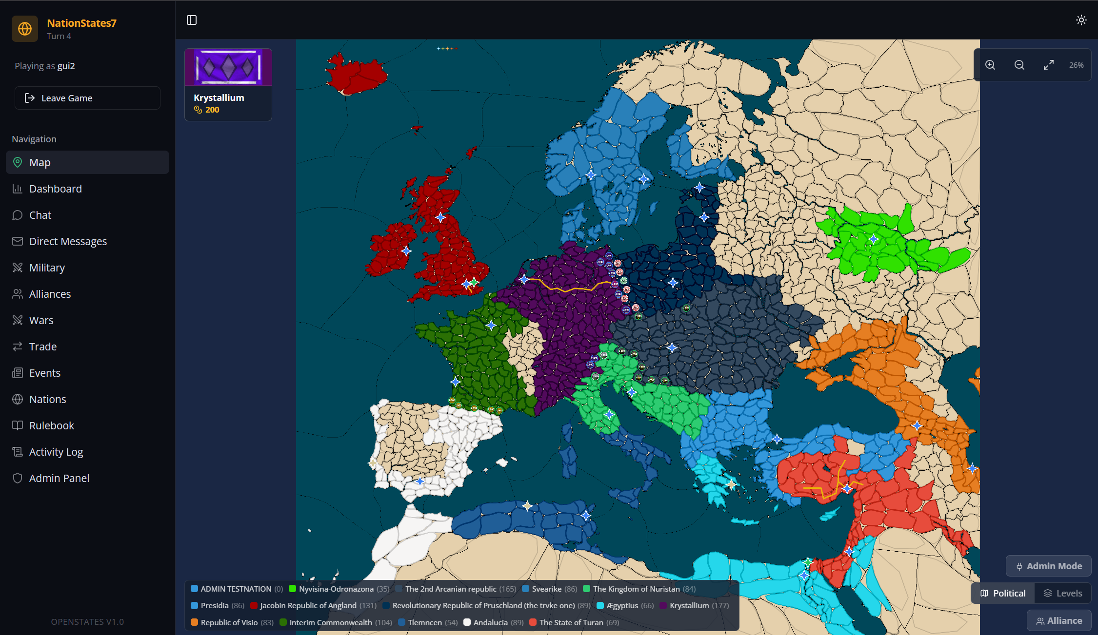 Hey anons! I'm posting this here because I want to get word out to the proper autist userbase that I dream of for this game. This game was dreamt up by a couple friends and I had the joy of joining and experiencing the wonder of the interpersonal drama diplomatic shitstorm that always ensues. I'm debuting OpenStates! A website-based game for 10+ people. OpenStates is a turn-based strategy game where each player controls a nation on a shared map. Your goal is to grow your nation through smart economic management, military strength, diplomacy, and territorial expansion. The game is run by a host (admin) who manages the map, advances turns, approves wars, and keeps the game fair. Turns advance on a regular schedule (typically every 2 days), and each turn your nation earns gold, gains manpower, and can take actions.OpenStates is a roleplay nation building website kind that's intended to take place over the course of months. Each turn, in the beginning, is once per turnYou can create a map yourself - a tile map, and a levels map, or you can use the included ones; Europe/Fantasy. You make gold by acquiring land and building cities. You can also apply for loans, or make trade deals, sell manpower; a manner of things. The story and flow of the game is dictated almost entirely by the players; but the host can make use of clever admin tools or host-controlled nations and events to spice up the experience and create tension. Most wars evolve purely naturally out of grass-roots realpolitik.Picrel is me and my friend group's current group. Hope to see some games soon!