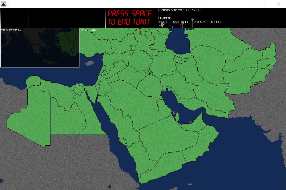 Map was a square, each player had equal territory size and different color. You had to sow wheat, then you sold it and could use the money to hire scientists / soldiers. Research was agriculture / population density / military, you had to hire generals to lead your army and goal was total domination.