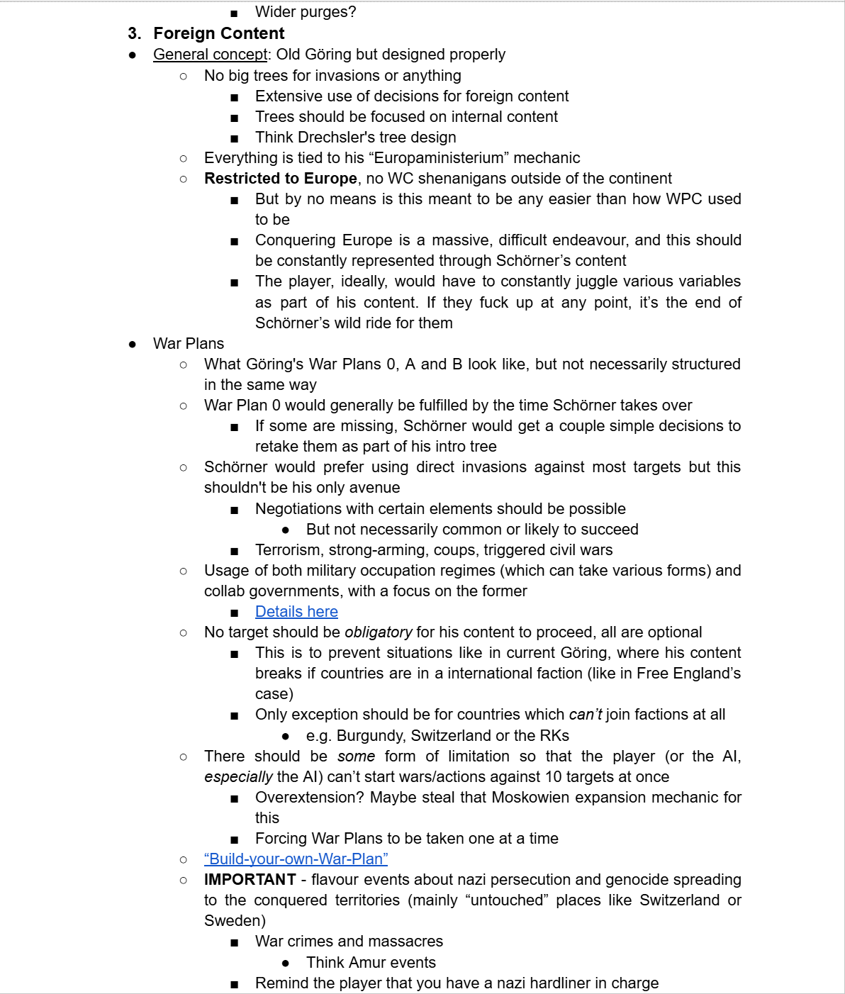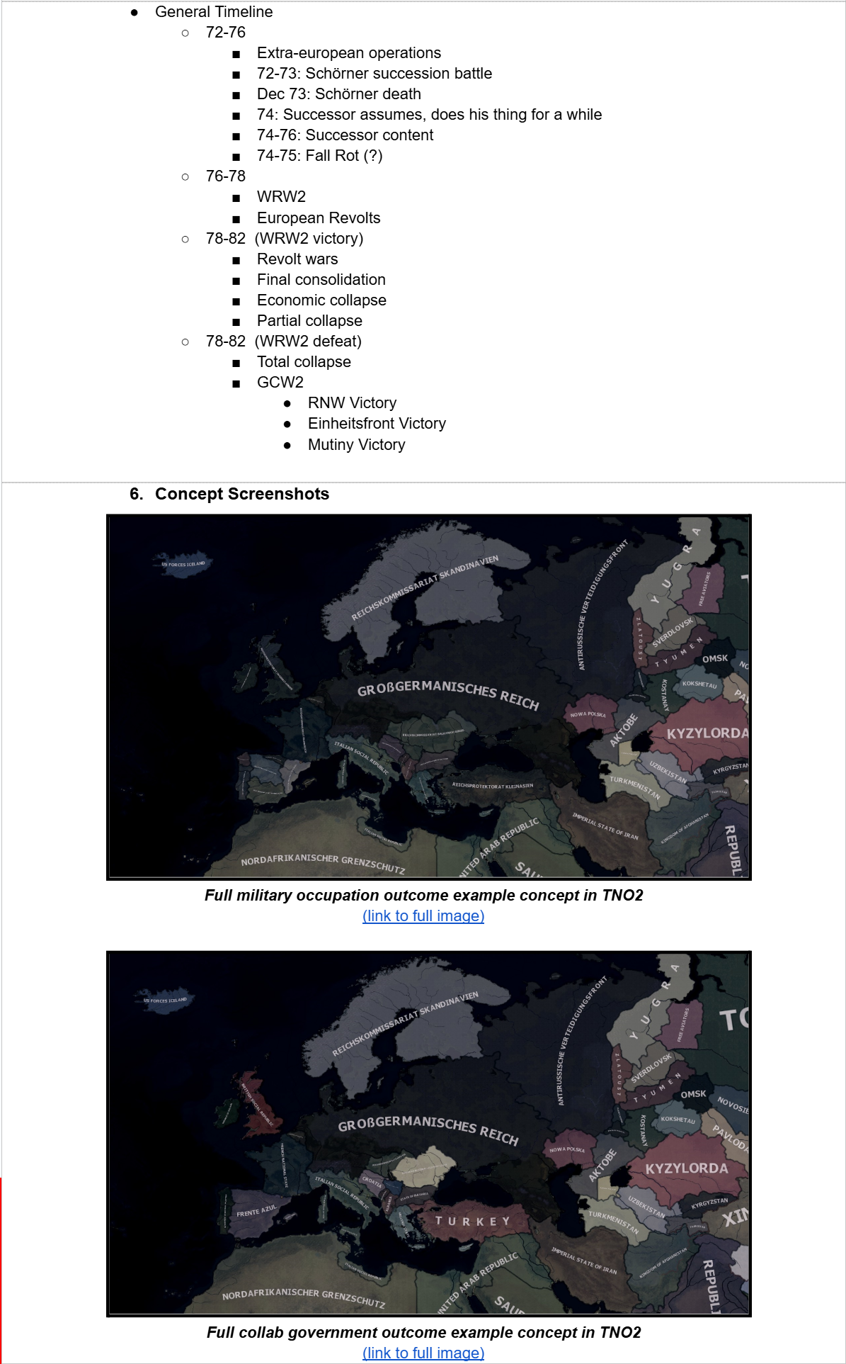 https://files.catbox.moe/iicybx.pdf - Nixon characterization doc for writers. It's what you think it'll be.https://files.catbox.moe/9p7n8b.png - Vote Pig Nixon tree.https://files.catbox.moe/go9tnq.png - VP Reuther tree.https://files.catbox.moe/ez4g4c.png - VP Schlafly path. Peak evil Republican fascism let's go!https://files.catbox.moe/joltgi.png - VP Yorty tree.https://files.catbox.moe/m1i3hv.jpg - VP rework leak, Hiram Fong replaces Romney scrapping years of work in the process because it "didn't fit the Republican narrative".https://files.catbox.moe/71ilh5.png - Central America design.https://files.catbox.moe/hi1h3m.png - China flowchart.https://files.catbox.moe/djf9rg.pdf - Latest Moskowien rework proposal.https://files.catbox.moe/9nqmlk.pdf - Iberian Wars rework document.https://files.catbox.moe/5anjuv.png - 5 new Caribbean nations flowcharthttps://files.catbox.moe/nlrpjl.pdf - British West Indies lore documenthttps://files.catbox.moe/s9rx4e.pdf - GGR Constitution for TNO.https://files.catbox.moe/ptvdb1.pdf - Old Indonesia proposal.>TNO:RAhttps://gitgud.io/Ivanishvili/TNORA - TNO: Rises Again Git. Atlantropa TNO for current HOI4 with new content.>LEAKED BUILDSJust making sure these aren't lost again.2021: https://gitlab.com/IllyaTokar/git-days-of-europe2022: https://gitlab.com/retardedsolutions/git-days-of-europe/2023:https://mega.nz/file/bBFGHZJT#a4lNsnLLzHWHG1iic5yHwgL1kK1VAE5qmT2Iqi7k2EM - Hotline Manchukuohttps://mega.nz/file/TIMmVBKC#939MhfLfR3G0UQdenlK0R5AY54x8lGlnSs42H8BzHhw - Illusions Endhttps://mega.nz/file/SBtSmZAD#CDYh4s4SBz3GjvBSOjOpQ4RnGgaDhnq39ehNTVFzbhs - Penelopes Webhttps://mega.nz/file/CZt1CZwa#O0Yfzil-VqfJBwH_yuWvGkbDK5XF7DG5iM7rdO-rqdg - Germany Branchhttps://mega.nz/file/SJ0HjDrC#jeTd9dcOuCeNpAZvrM_tFJjaSKjWLhVpSibBVqj_eWg - Shifting Tideshttps://files.catbox.moe/3v5h8h.pdfYortyhttps://files.catbox.moe/omzl7q.pngFrance