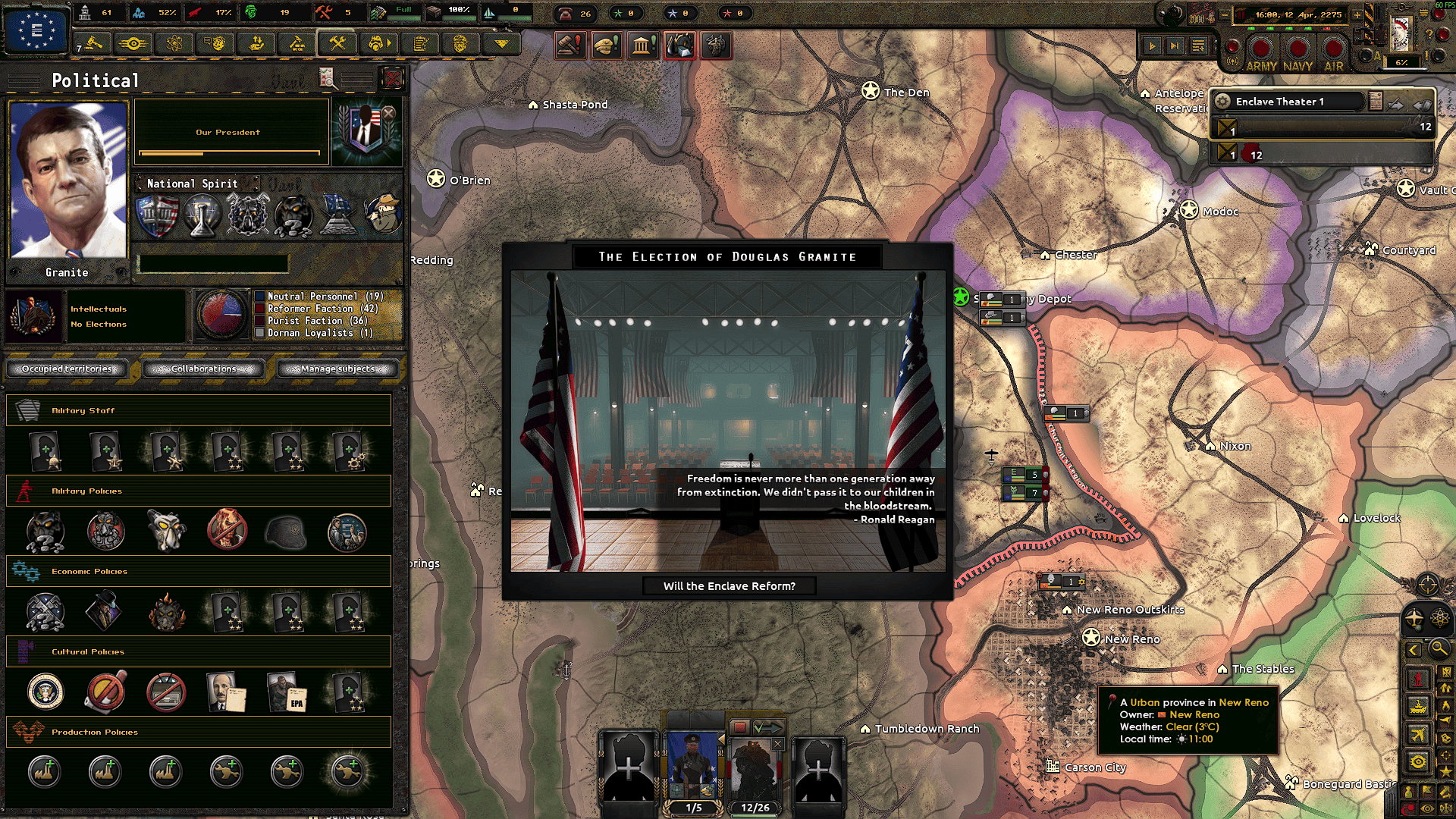 >>2168747I like it though it has no where near the action of other big mods, even now, like TFR so if you like Cold War dynamics and proxy wars then you'll probably enjoy it. I don't know when you last played it but the thunderdomes are the Middle East, Korea, Southern Africa and Eastern Europe though intervention is limited unless you want WW3 which is possible. They have content for the UK and Iraq which I like and believe was the last update along with some minor changes for the US though an update will come to shift some stuff like moving Pat Buchanan from Reform to the Republicans. I wouldn't say it is worth playing again if you only want to see what has been changed with the USSR as I haven't noticed anything different. Honestly I am little disappointed with the speed of updates but they are pretty good for what they are, I'm pretty sure the next one is focused on China and Iran which will be cool, Inshallah Wéi Rénmín Fúwù.