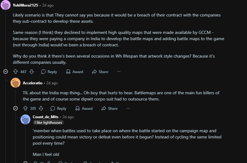At this point maybe the entire game is outsourced in India. That explains how Warhasiht is pure trash today.Warhammer thing will be anihilated for good once they relase the new Medieval 3 or Rome 3. Historical TW fans will laugh again.Historychads keep winning.
