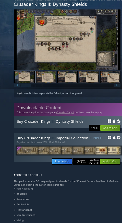 >>2171770To be fair $2 for 50 new shields is a better value proposition than a lot of their dlc that's $20 for like one new mechanic that adds flavor and a bunch of other things that break the game for an entire update cycle. When it comes to paradox I'd actually prefer horse armor tier dlc rather than what they do most of the time.