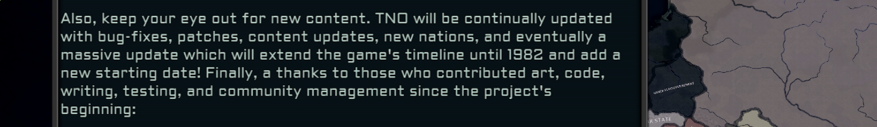 >>2174711>>2174736>>2174740The above anon is wrong in their description. The two mods offer very different experiences and have very different goals.Rises Again is based on a 2021 build of TNO. It lacks anything added after the first few updates, doesn't have the economy system and much more. But it offers a pure, close to the original experience with the old Atlantropa map. It also reinstates/finishes a lot of cut content from TNO, mostly things from leaked builds that the nudevs ended up deleting for having wars and gameplay. It also adds some fanservice content like focusing on funny Heydrich expansions. It lacks a lot of the future bullshit and complexities of modern TNO, but also offers heaps of conventional gameplay fun.Requiem is based in a modified 2024 build of TNO, cutting off before the Antarctica map released. It has all the content of the Second West Russian War mod (ie more to do in Russia after unifying), and everything added after 2021 like Guangdong. It also has the new economy system in TNO, as well as many other modern features. However, that also means that it suffers from a lot of the cuts and other damages that the nudevs have done to TNO and the devs haven't been able to fix everything yet so entire routes like Father Men's anarcho-Christian Russia and Goering's Germany are currently unplayable. But just like how Guangdong is unplayable in Rises Again, these are just sadly the compromises you have to make since TNO was hijacked and destroyed by a clique of political spergs that don't even play HOI4.tl;dr TNO:RA is very close to the original release warts and all but is an enjoyable and close to vanilla experience while TNO:R is closer to modern TNO without all the bullshit. Pick whichever of these sounds best to you. As long as you stay clear of the original and be mindful of the fact that these are fan forks by small teams (~3 people in the case of TNO:RA) you should be fine.
