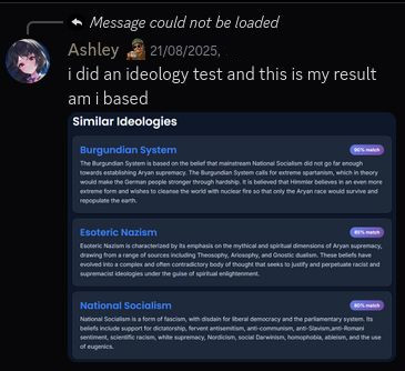 >>2180520They prolly ban anyone with 88 unfortunatley, They don't tolerate fans of our beloved Fuhrer