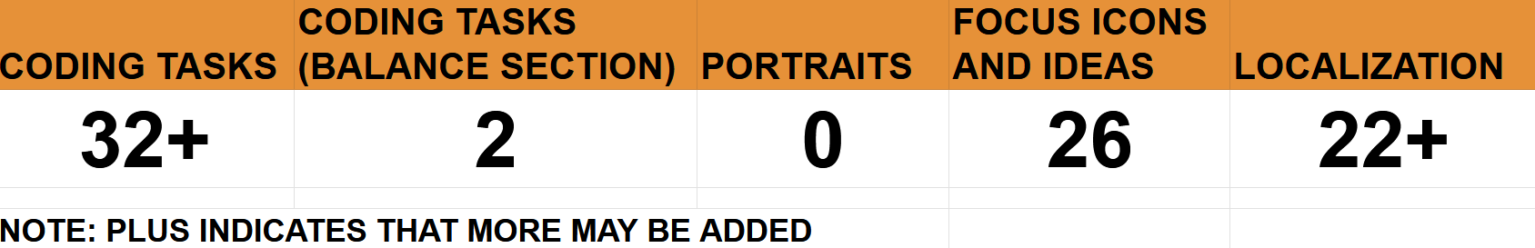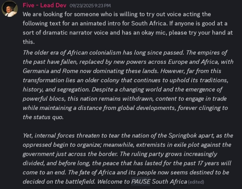 The coding tasks are pretty average mostly just balancing units, bug fixing and implementing focuses and decisions. The loc tasks on the other hand are more interesting, like there being events regarding Nelson Mandela and one about him escaping prison, the other locs are mostly good but not really worth mentioning