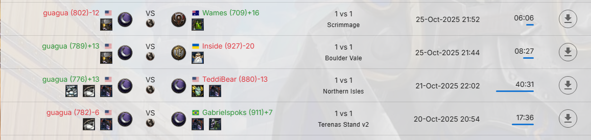 >>2187041>I'd complain that blizzard should also save the replays and let you download them at a later date but I guess that would take a ton of space.W3Champions logs all games and lets you download replays from the website. Just look up your name or the name of your opponent and you'll find them available to download through match history. Pic related.