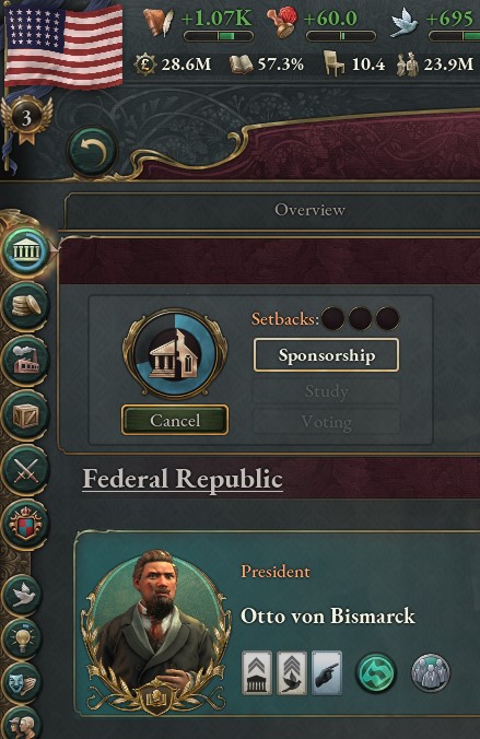 >>2181817The same applied to Victoria 2, except they were implemented into the province UI so by default you engaged with them. V3 seems like it's deliberately moved them to other parts of the UI to encourage you never to look at them or engage with them.
