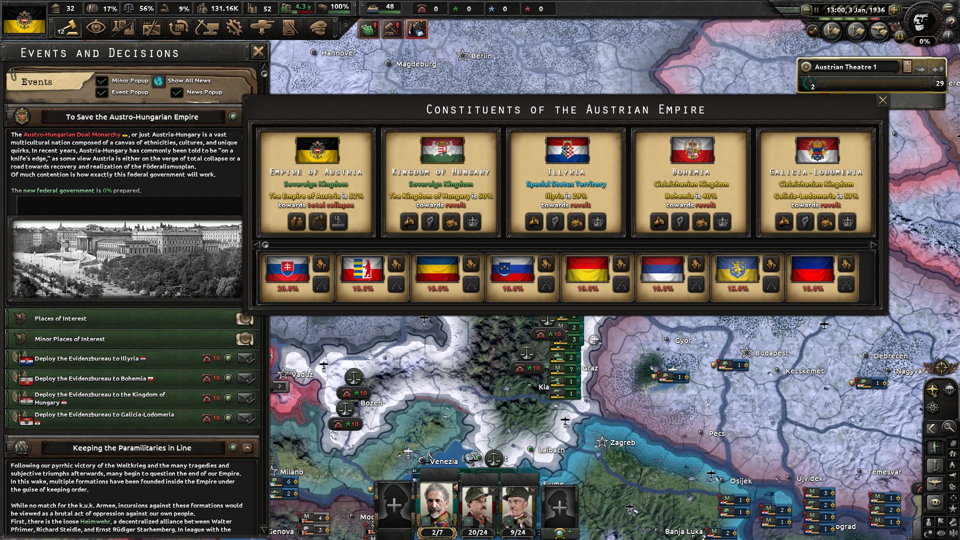 >>2187955Well German tree is massive. You always do have something to do, although sometimes it can be overbearing. You have a lot to deal with, but you can become quite OP in the late game. It has quite a focus on German super science as the end goal of different branches of the economy and the military. And I kinda like the aesthetic of preserving the 19th-century world and creating a sort of steampunk world.Austria seemed a bit too limiting for a long time. Trying not to collapse and federalise, and even then, you have massive military debuffs. Diplomacy is also quite unfiínished, so I couldn't really say much about that. But it really wasn't that interesting from what is there right now.